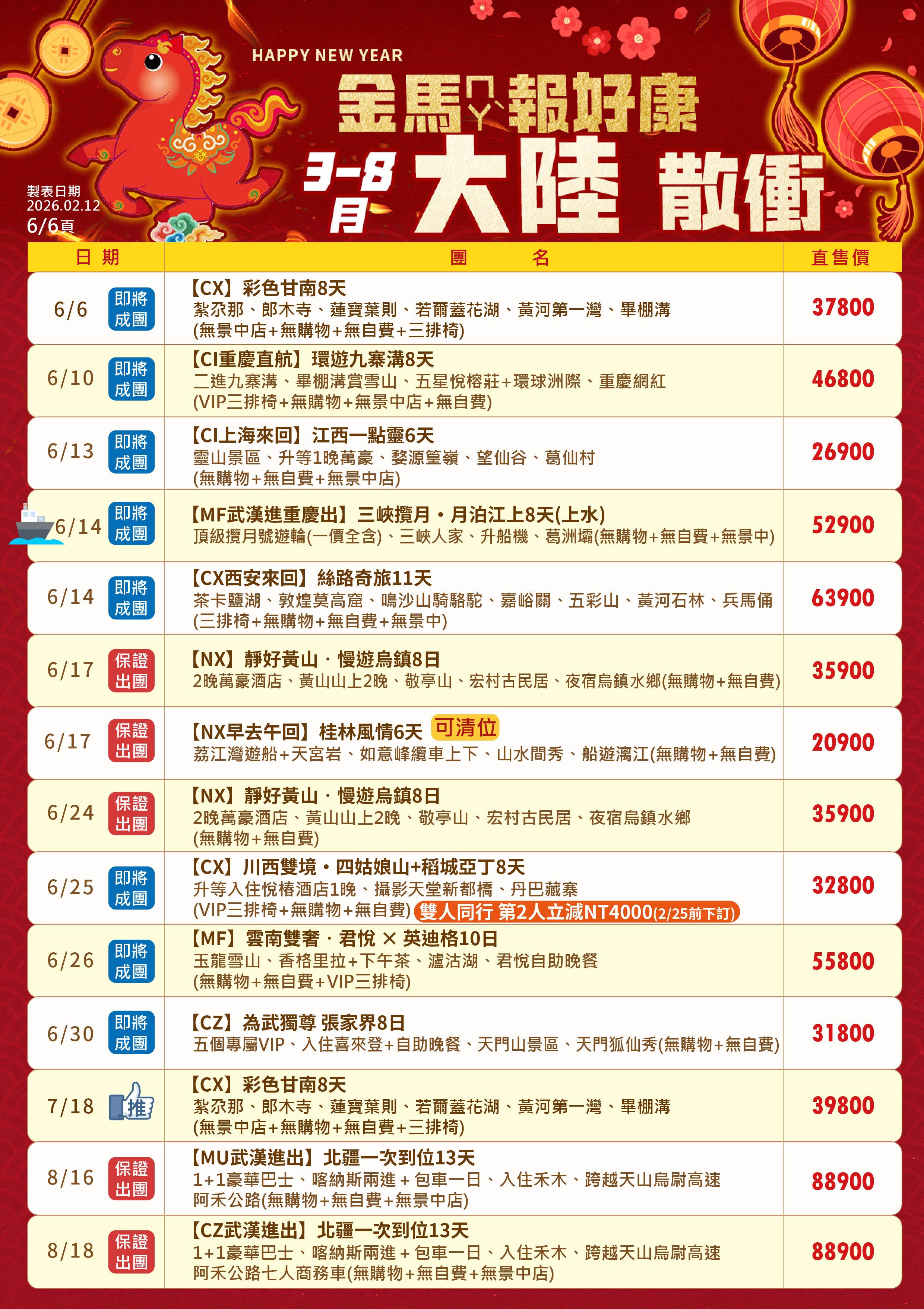 3. 行程如遇觀光景點休假及住宿飯店地點調整或遇不可抗拒之現象(天候不佳),本公司保有變更行程之權利。