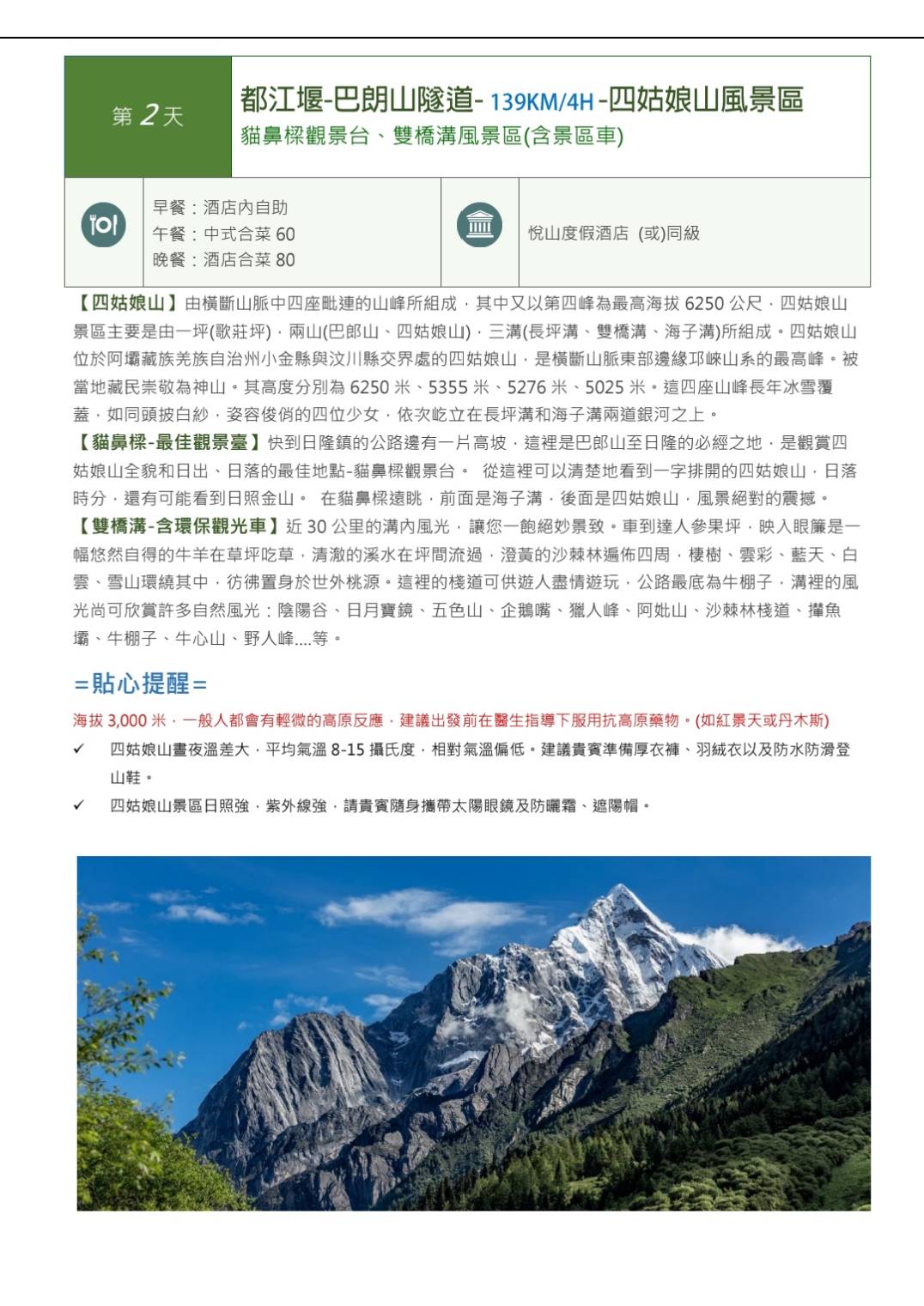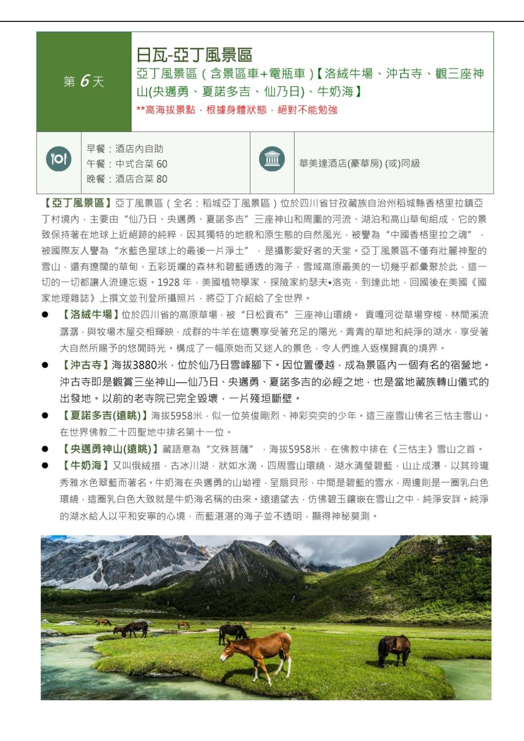 參訪稻城亞丁(二進)四姑娘山 丹巴木格措 深度10天 無購物無自費