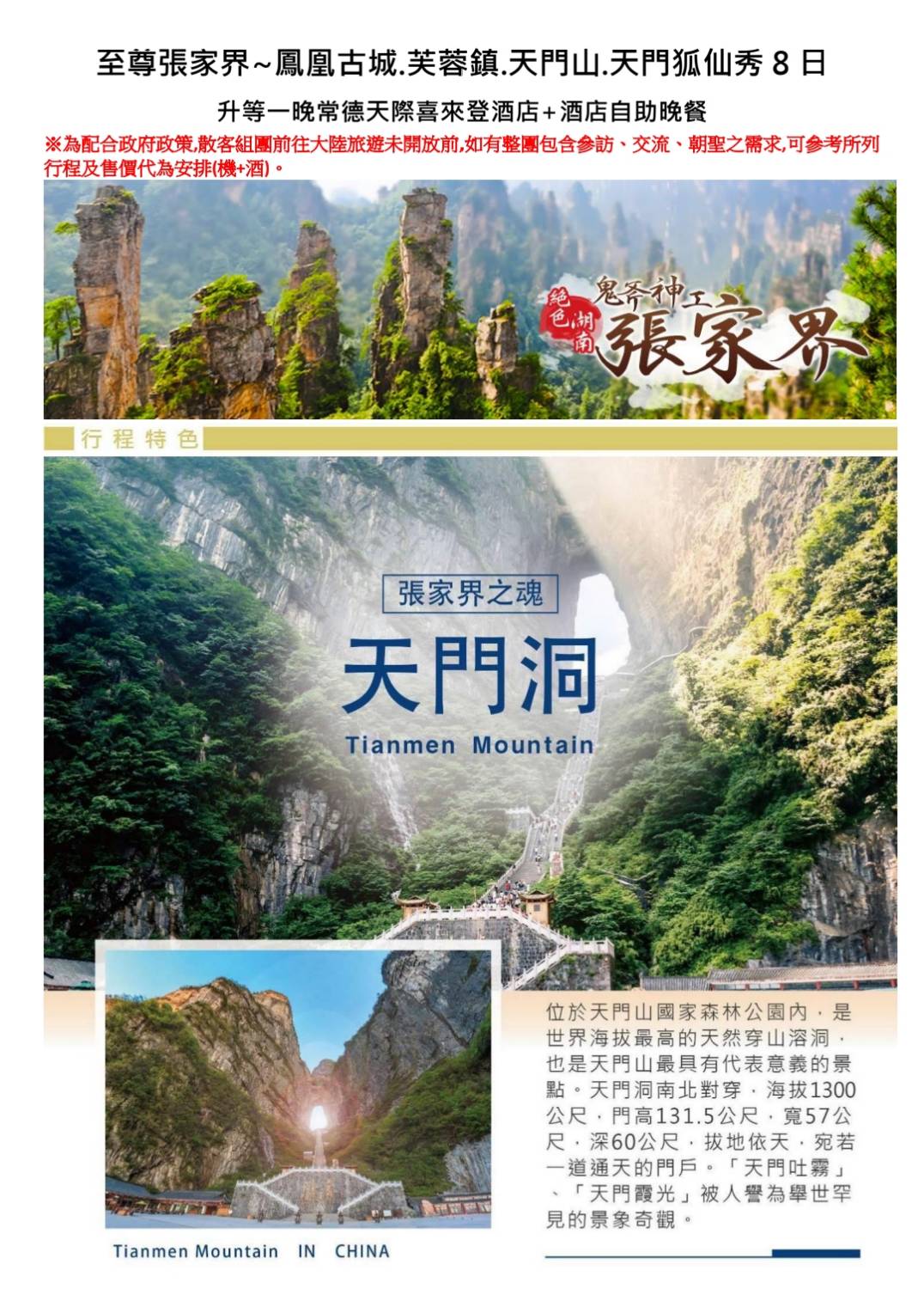 第六天 張家界【土家風情園景區】-天門山【天門山景區+纜車+扶梯+環保車+鞋套)- 2.5H常德