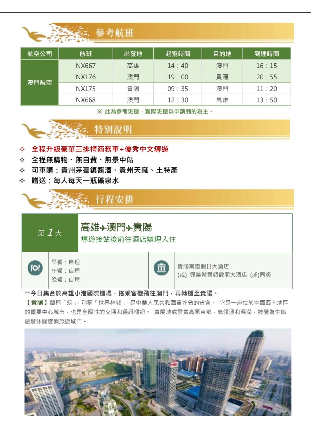 行程班機時間及降落城市與住宿飯店之確認以說明會為主。