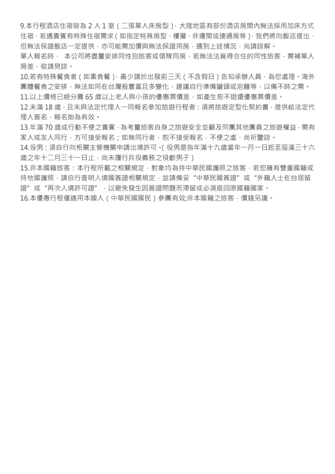 行程如遇觀光景點休假及住宿飯店地點調整或遇不可抗拒之現象(天候不佳),本公司保有變更行程之權利。