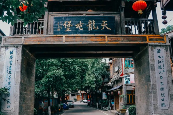 【天龍屯堡】位於貴陽西面約六十公里處,由許多屯牆垣壁、石板蓋頂的屋子和高聳的碉堡組成的石頭村寨。屯堡的歷史可以追溯至六百多年前的明初。那時明太祖朱元璋為加強西南的統治力量,在滇黔古驛道兩側設立屯堡,派軍駐紮。自此以後,這些軍人便在當地落地生根。經過世代繁衍,天龍屯堡已經歷近二十代人,全寨現有約一千二百戶人家。