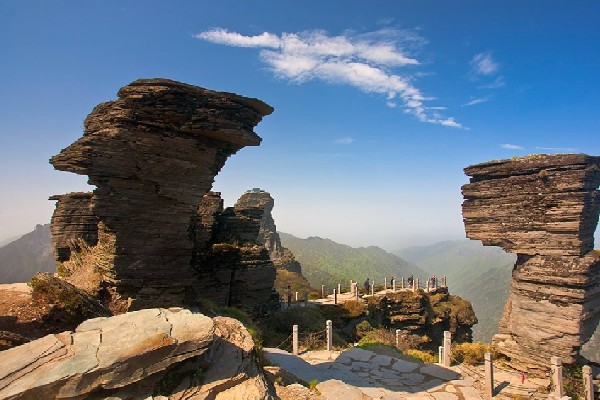【大自然的鬼斧神工~梵淨山風景區】位於中國貴州銅仁市的印江縣、江口縣、松桃縣交界處,為武陵山脈主峰,其最高峰——鳳凰山海拔2,572公尺,朝拜地——老金頂(梵淨山老山)2,494公尺,新金頂(新山)2,336公尺,原始生態保存完好,1982年被聯合國列為一級世界生態保護區。梵淨山擁有豐富的野生動植物資源,比如黔金絲猴、珙桐等珍稀物種,風景美麗自然,進入山區完全找不著人工景色的痕迹,其主峰的「蘑菇石」是著名的一道景觀,是旅遊不可多得的一個目的地。