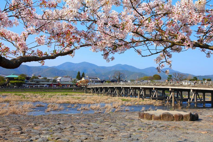 京都最具代表性的觀光勝地,此處四季之春櫻、夏綠、秋楓、冬雪遊人均絡繹不絕,橋下的桂川波光粼粼,水鳥點綴其間,景色優美。