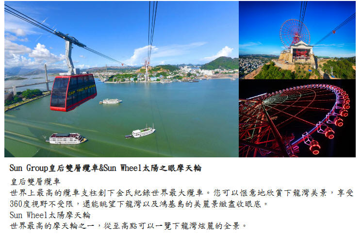 註3:下龍灣行程,若遇當時天候不佳,如:颱風、大霧或其它不可抗拒等因素狀況影響到安全,當地政府官方管理單位管制碼頭遊船無法出海。則改安排旅客前往鴻基島參觀當地傳統市集,午餐安排於岸上餐廳,這實屬業者無法控制的天災,敬請見諒。