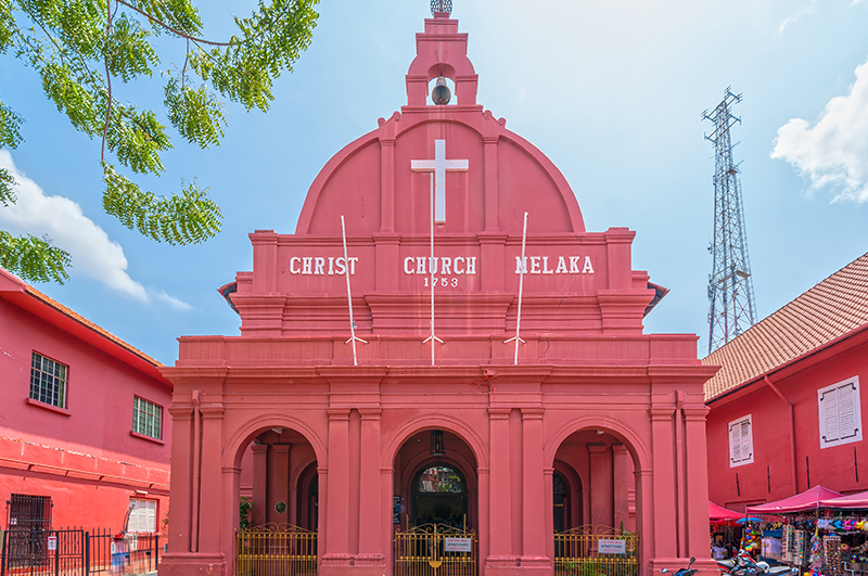 ◆聖芳濟教堂:聖芳濟天主堂建於19世紀中葉,是一座哥德式雙塔教堂,紀念16世紀在東南亞船教的聖方濟教士。教堂米白色的外觀在一片赭紅的歐洲殖民區內,反而更醒目,從馬六甲河上野長常可以看到白色雙塔的聖方濟教堂。