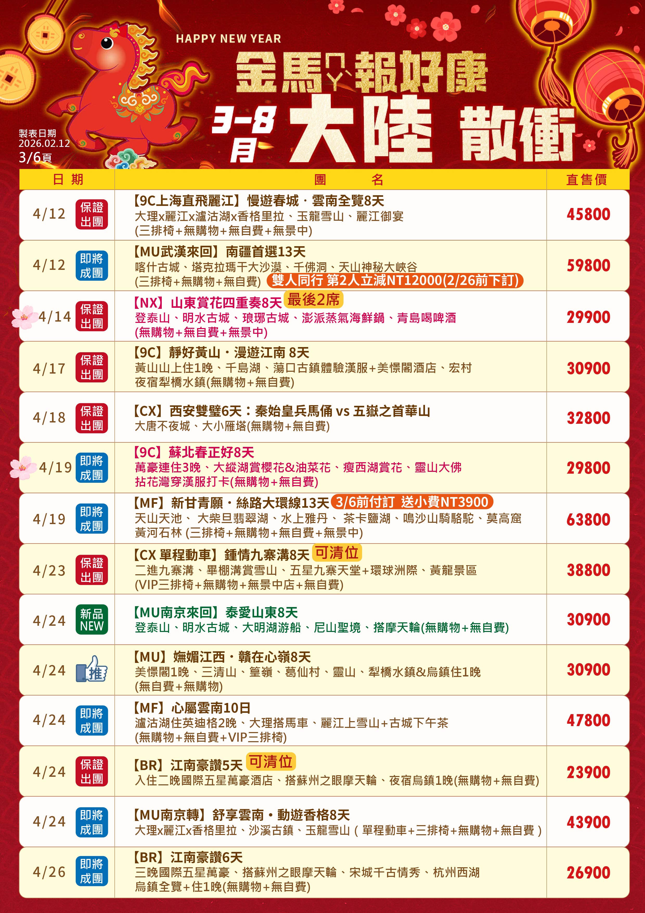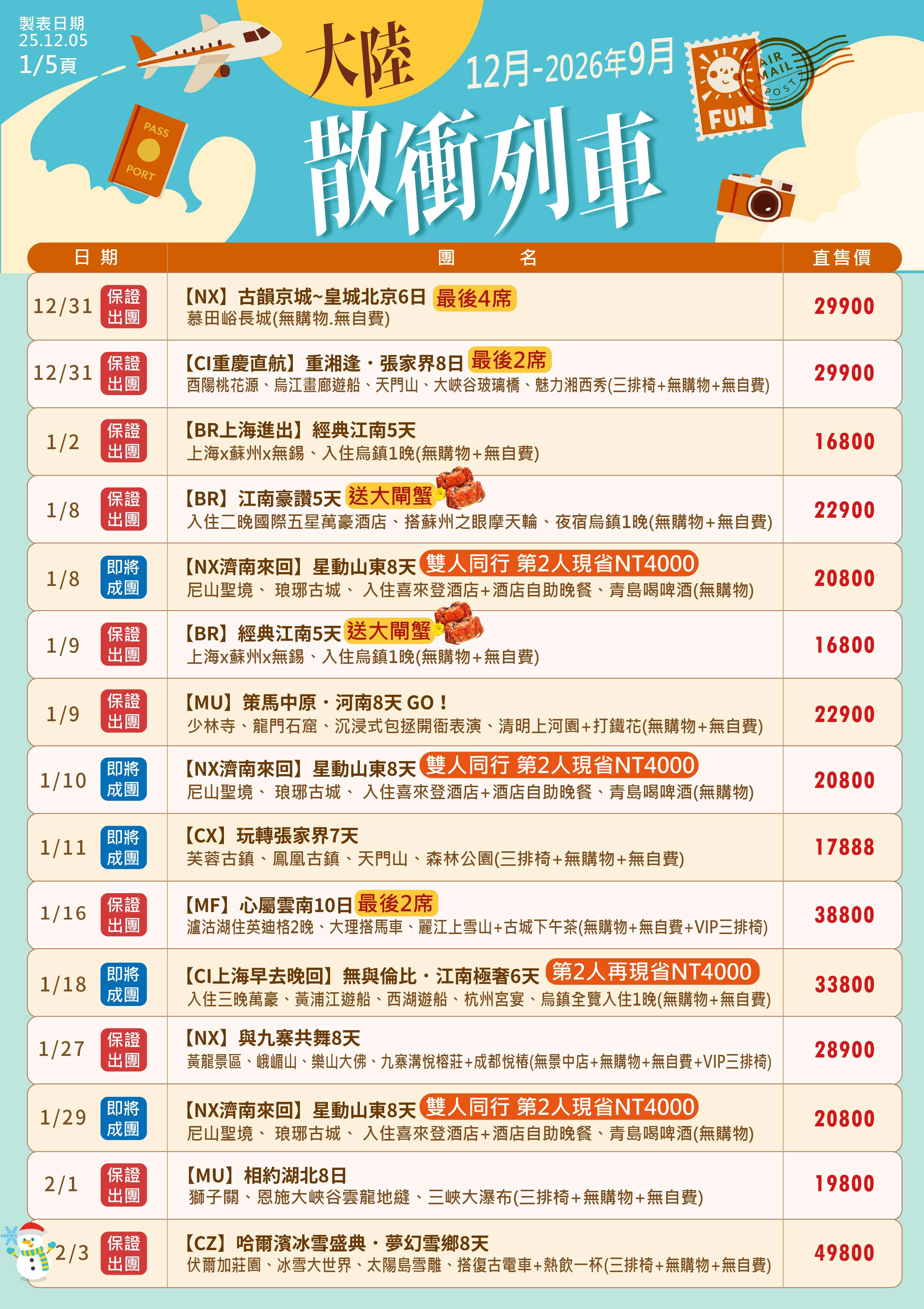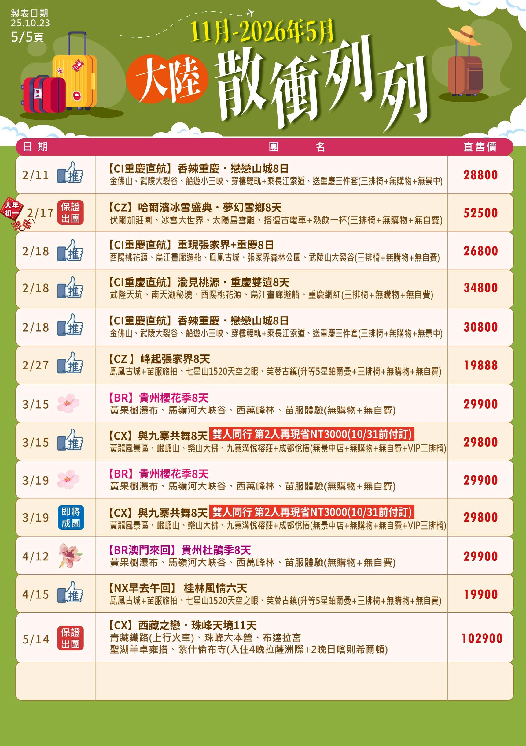 行程班機時間及降落城市與住宿飯店之確認以說明會為主。