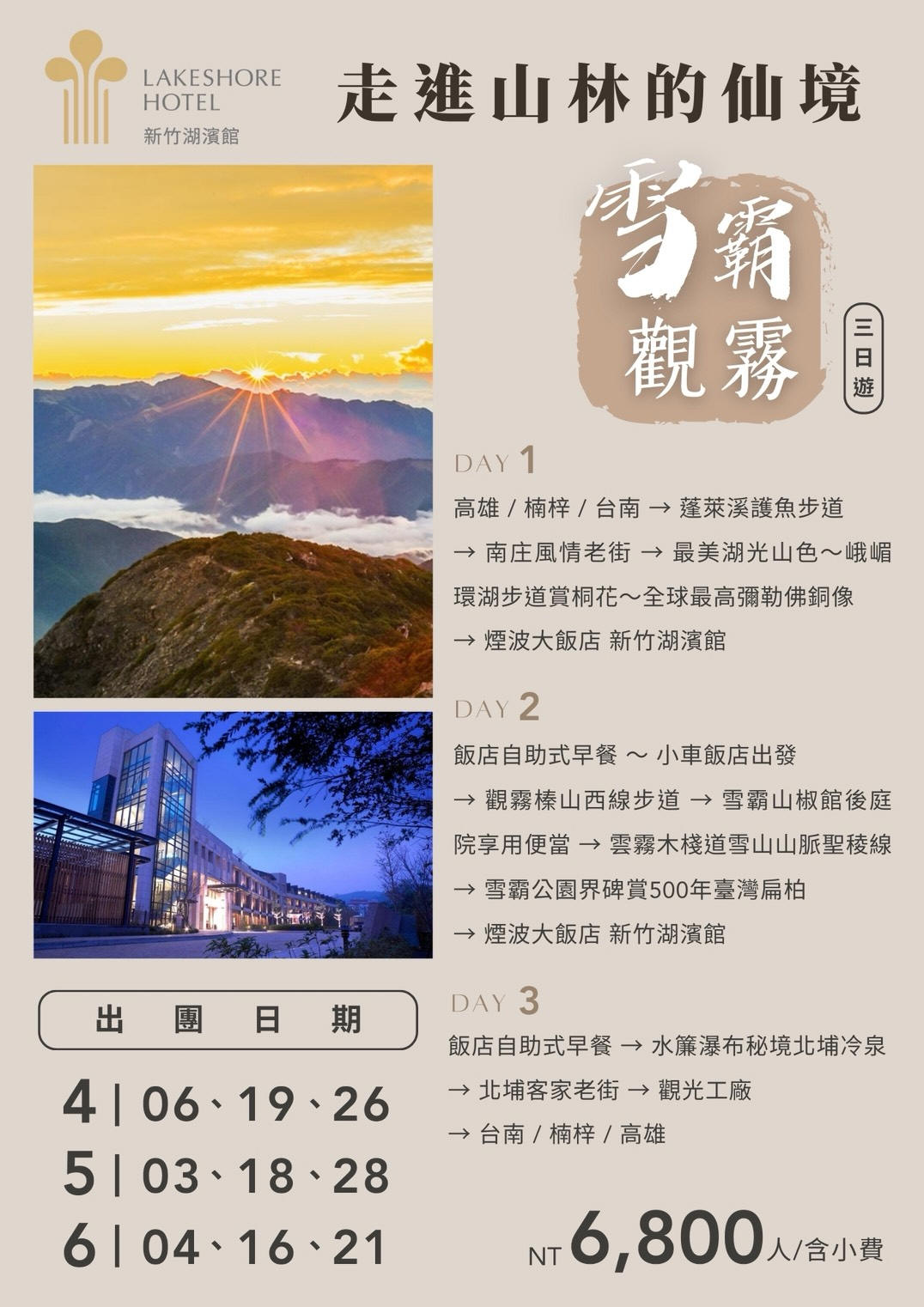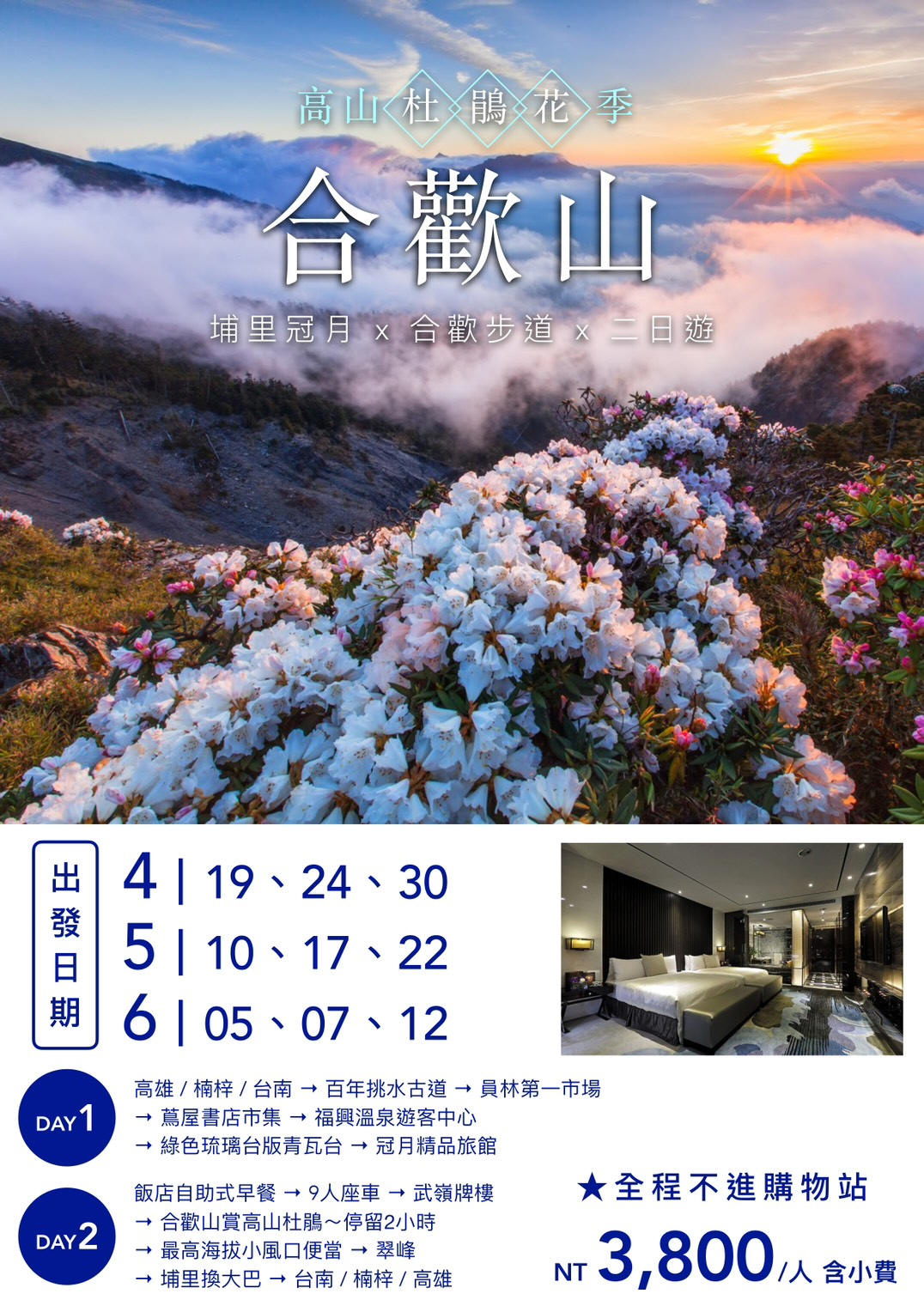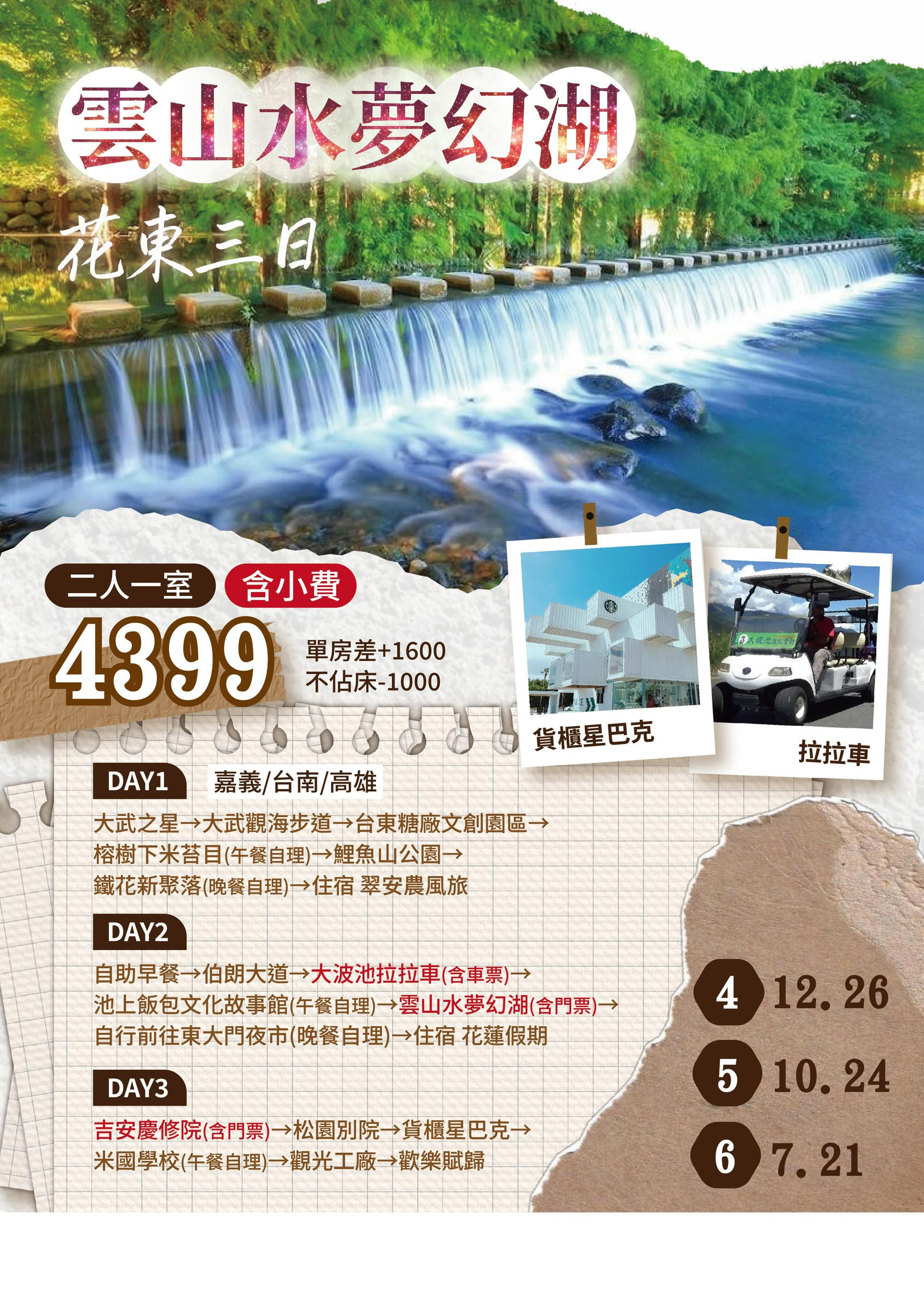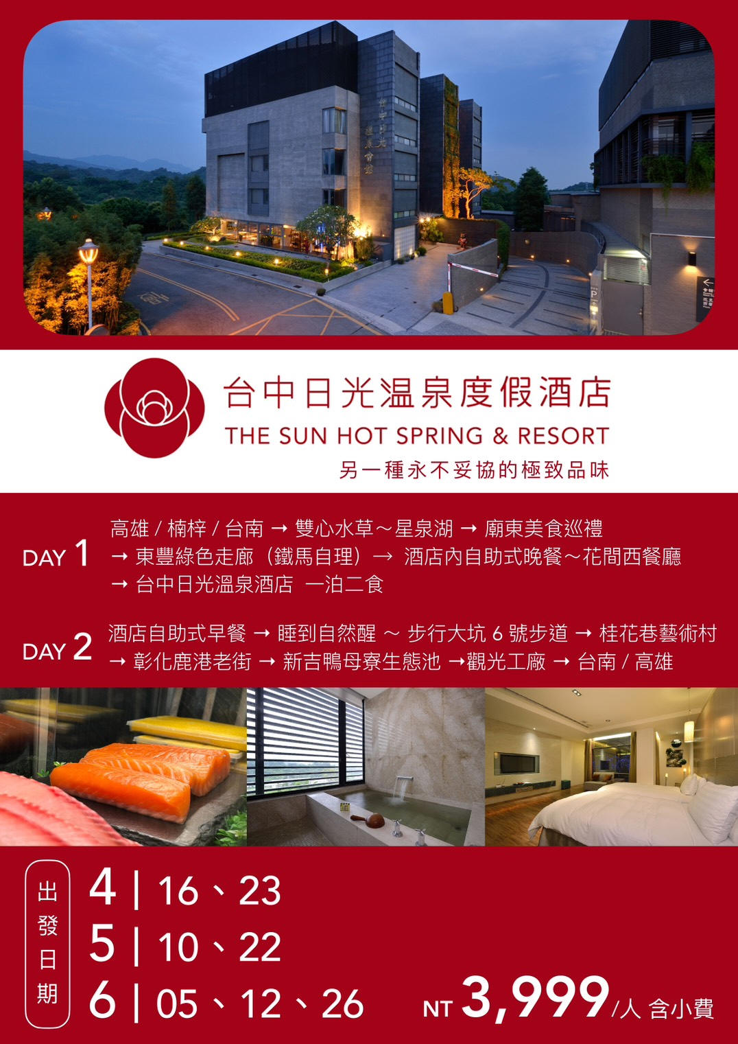 行程如遇觀光景點休假及住宿飯店地點調整或遇不可抗拒之現象(天候不佳),本公司保有變更行程之權利。