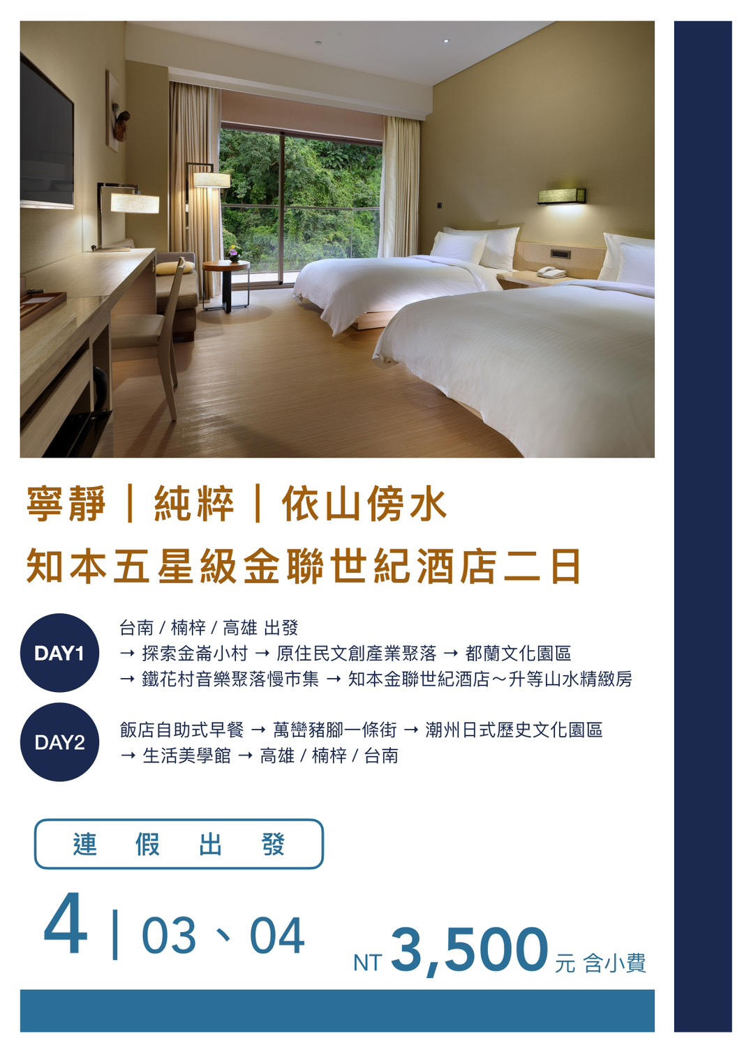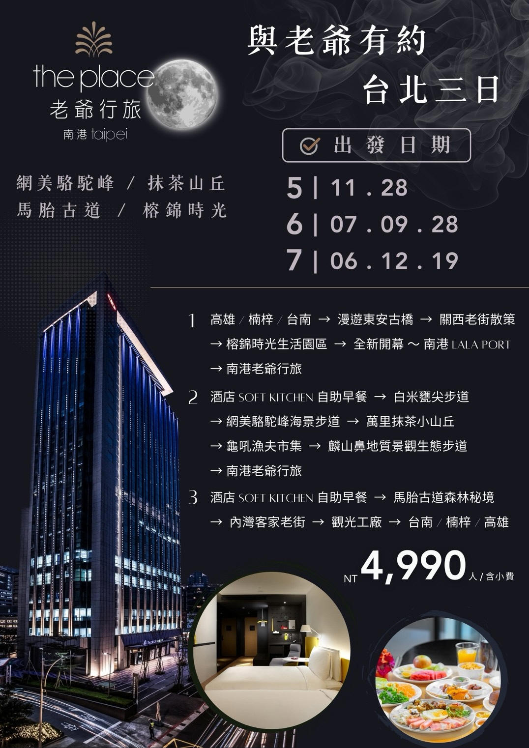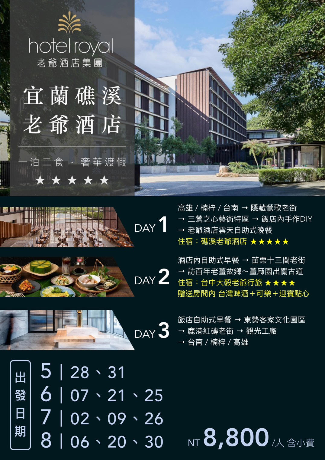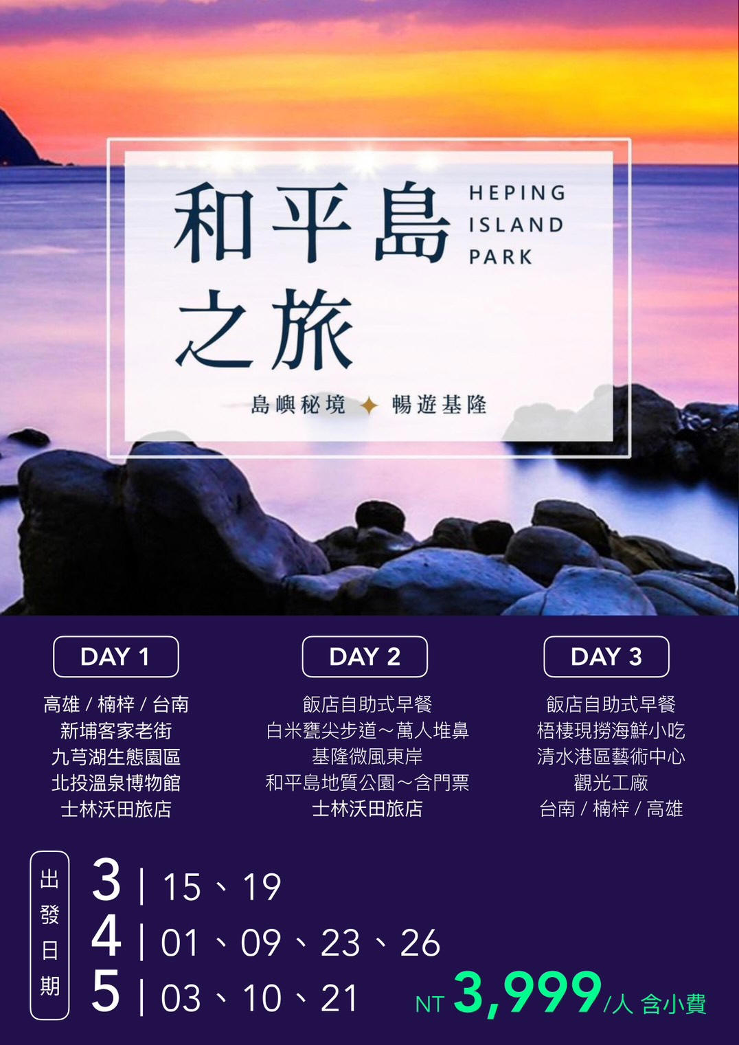 行程如遇觀光景點休假及住宿飯店地點調整或遇不可抗拒之現象(天候不佳),本公司保有變更行程之權利。