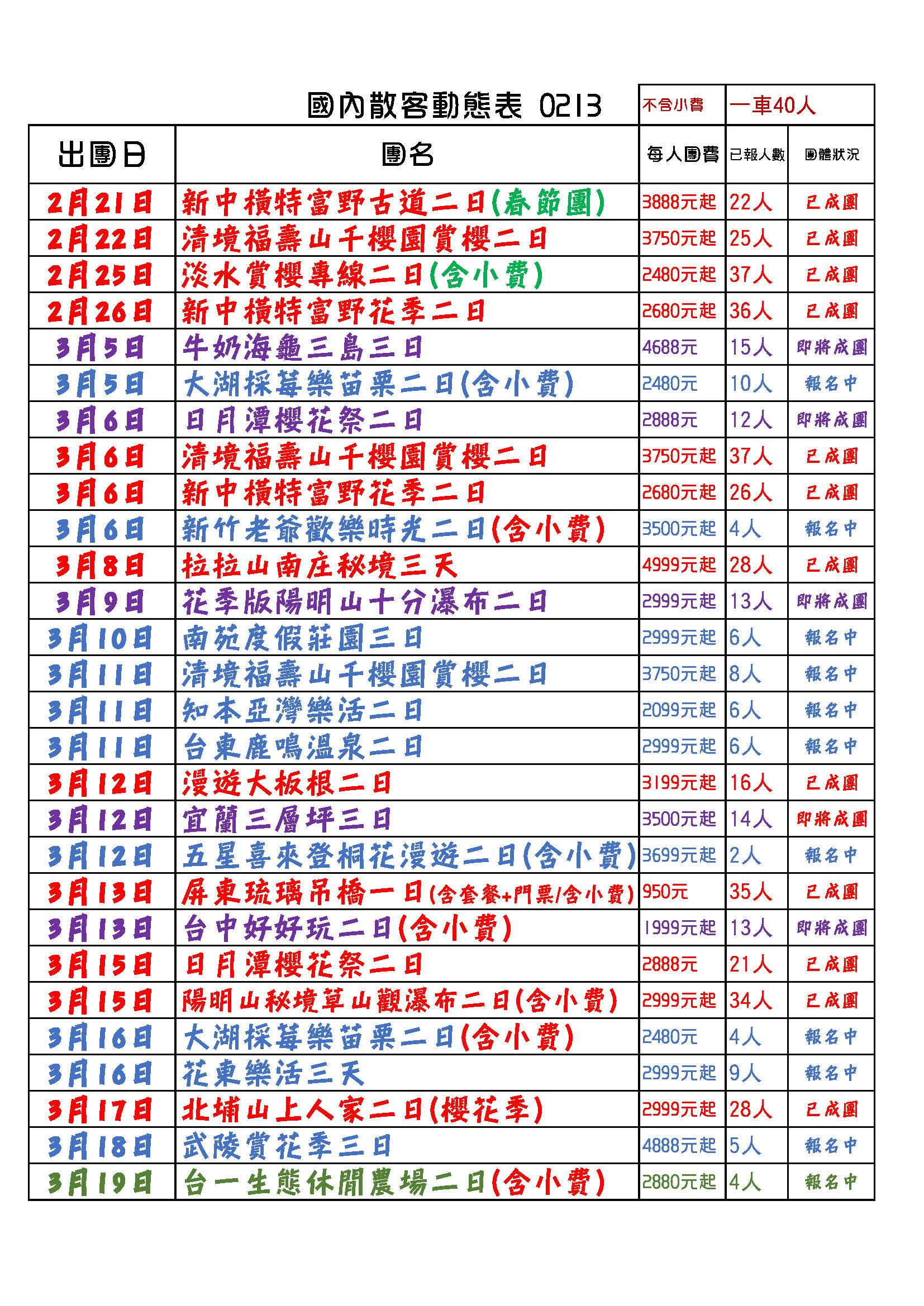 行程班機時間及降落城市與住宿飯店之確認以說明會為主。