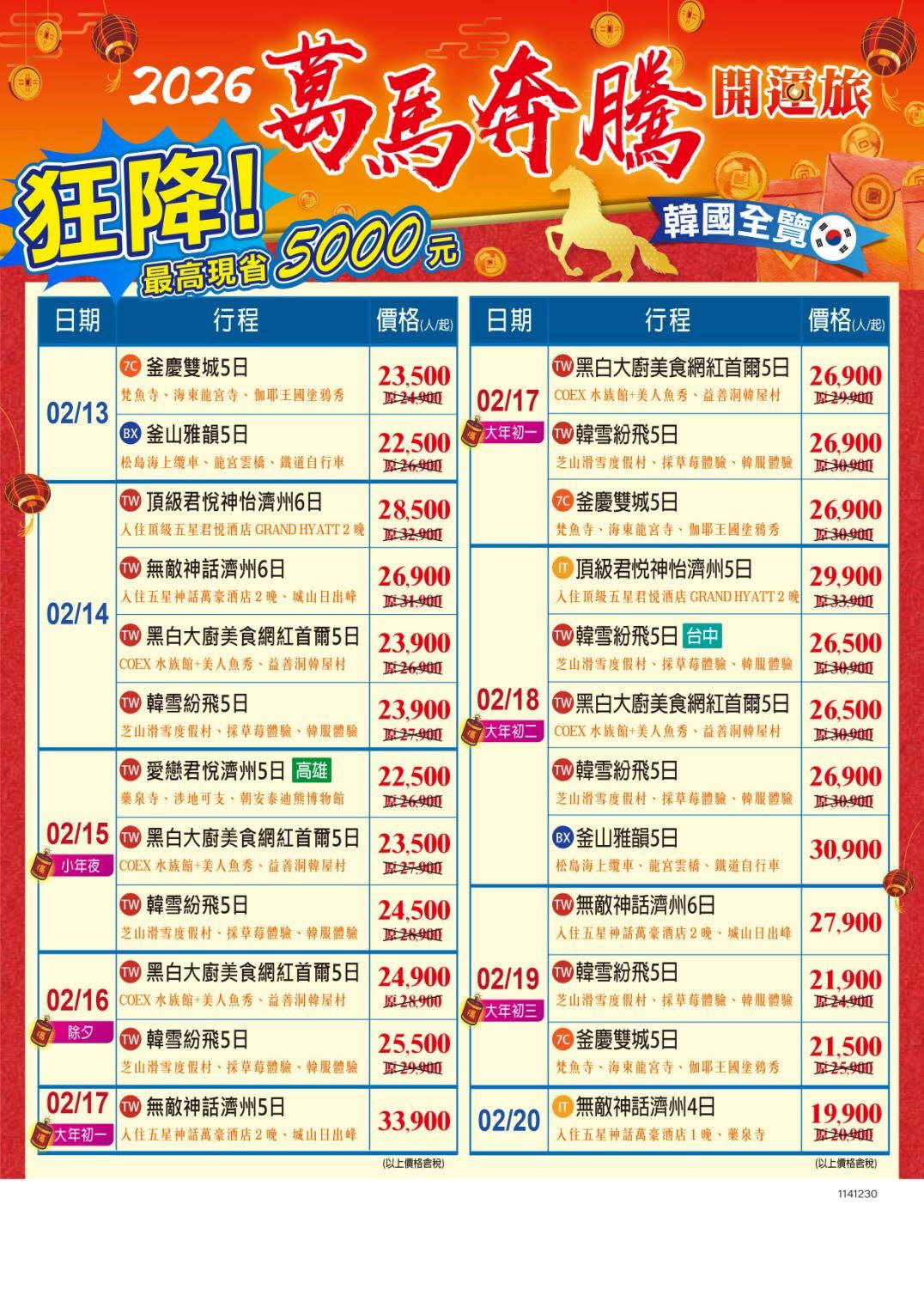 行程如遇觀光景點休假及住宿飯店地點調整或遇不可抗拒之現象(天候不佳),本公司保有變更行程之權利。