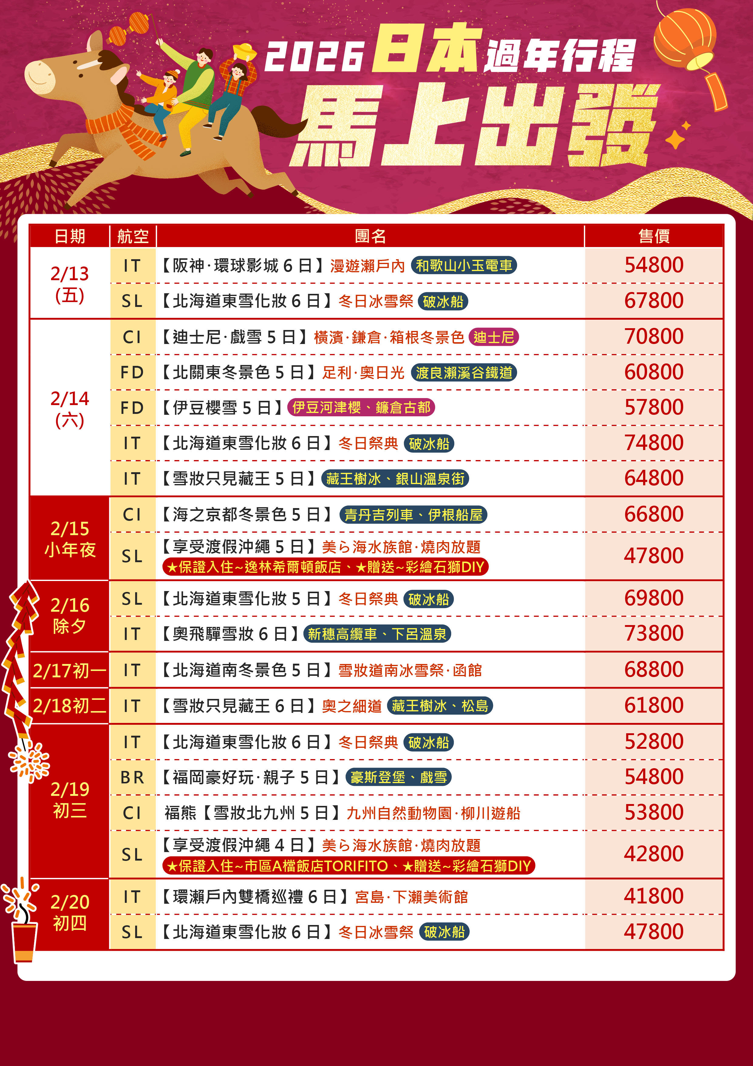 行程如遇觀光景點休假及住宿飯店地點調整或遇不可抗拒之現象(天候不佳),本公司保有變更行程之權利。