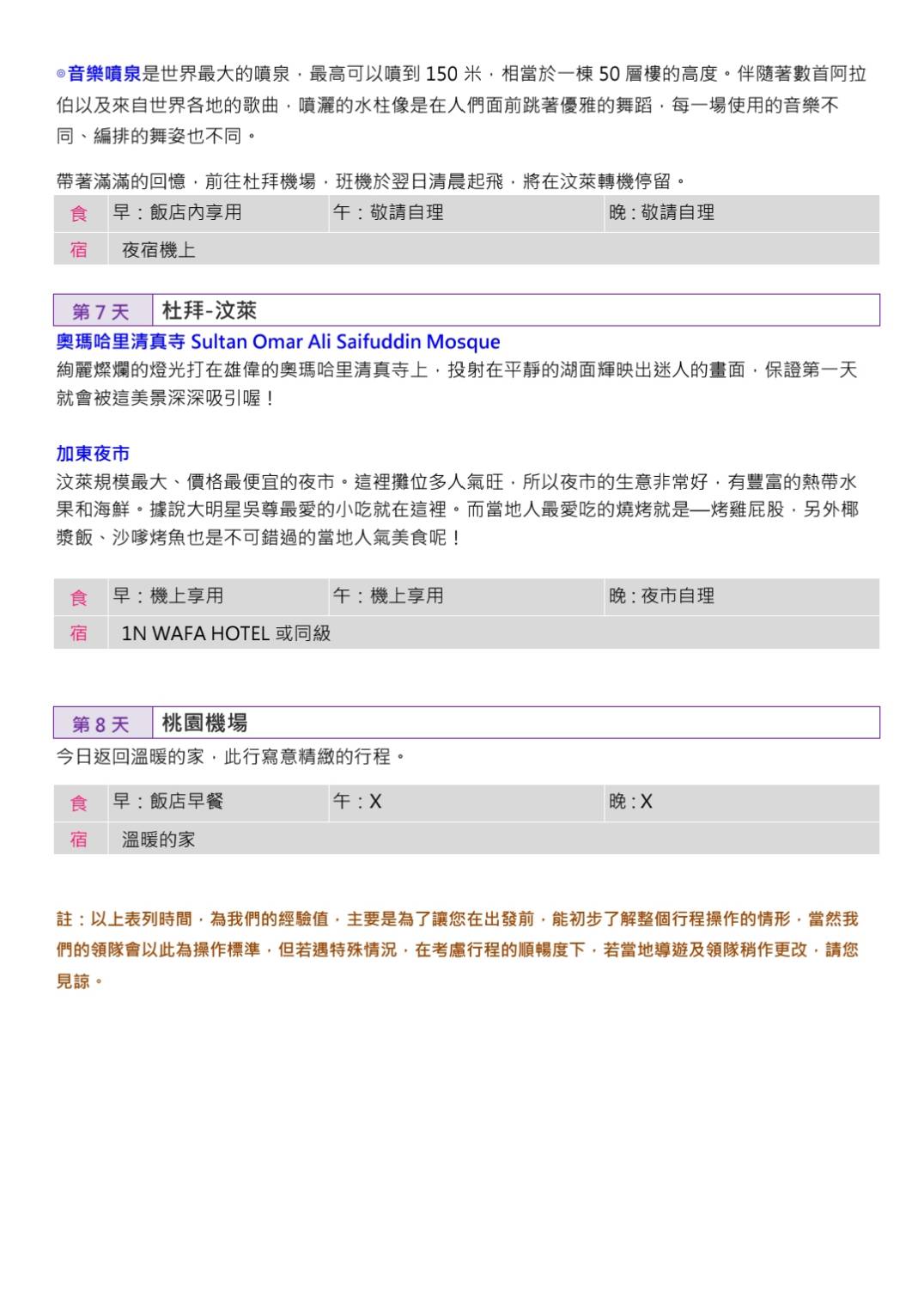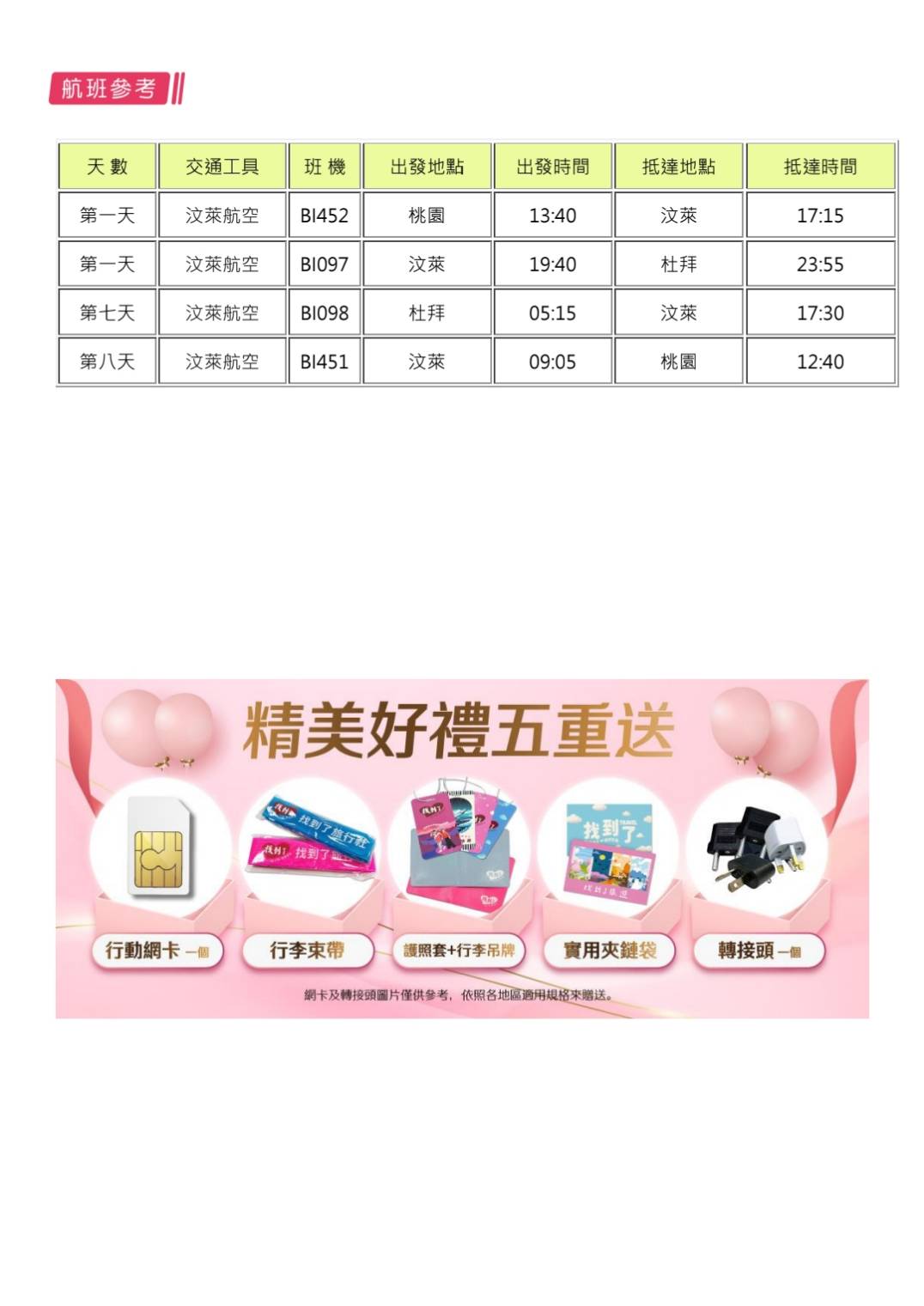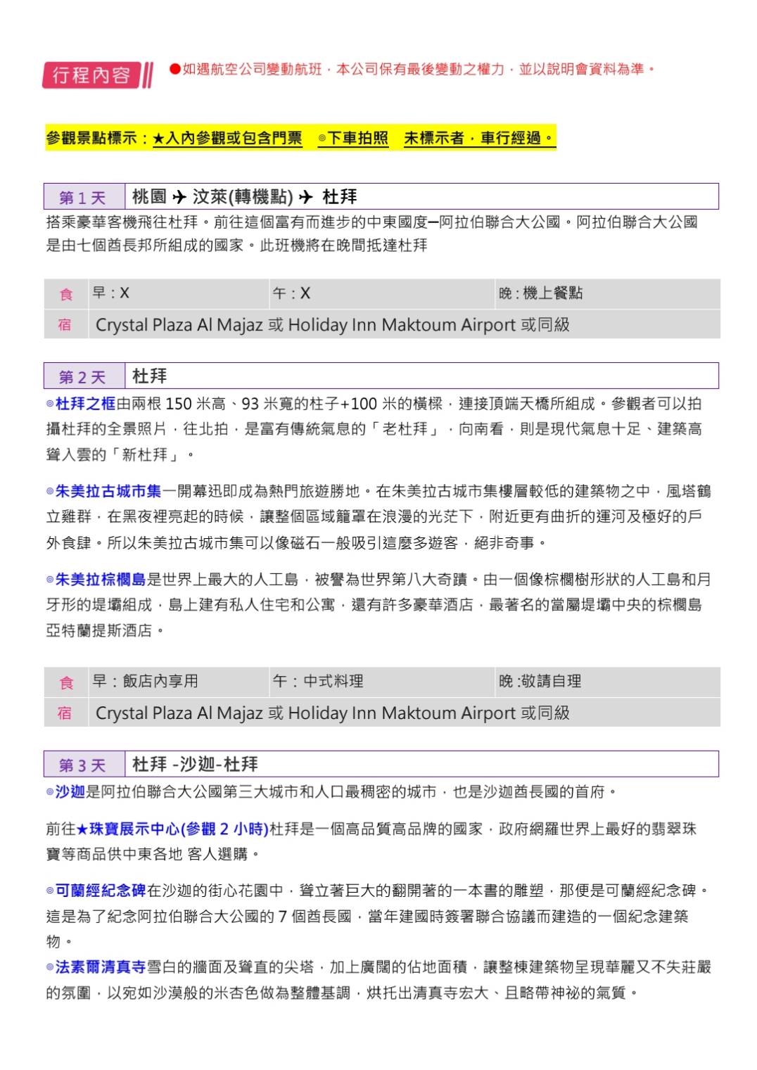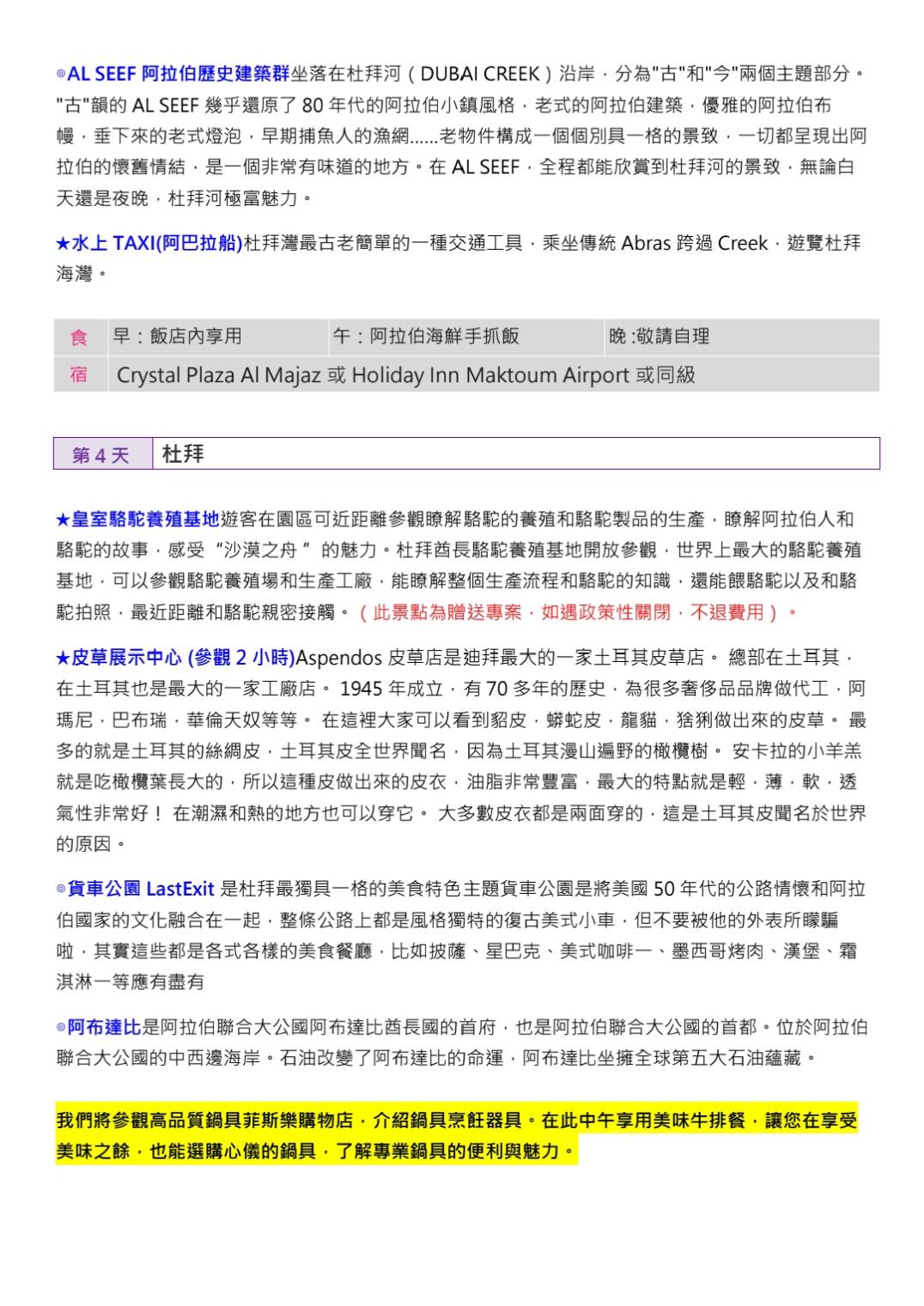 行程班機時間及降落城市與住宿飯店之確認以說明會為主。