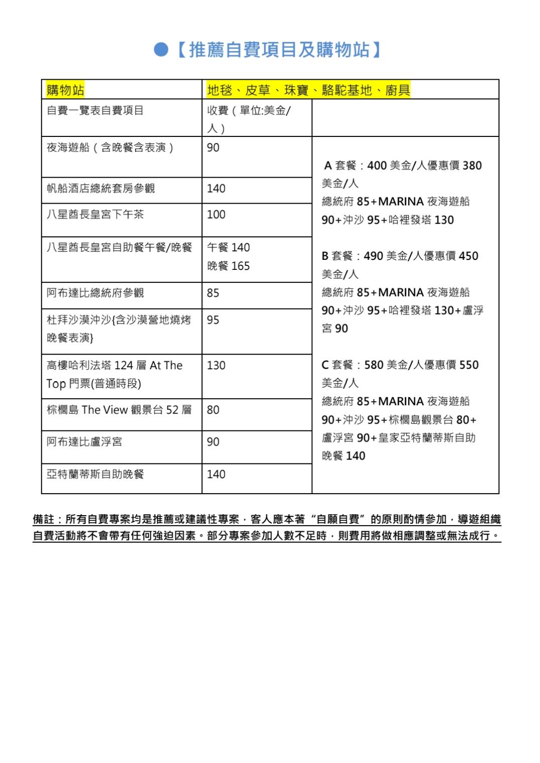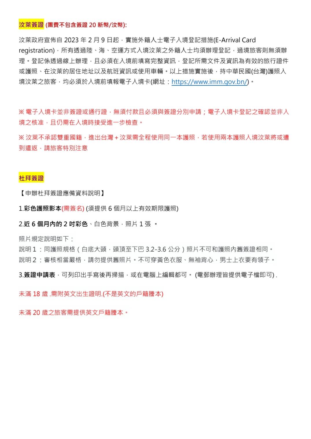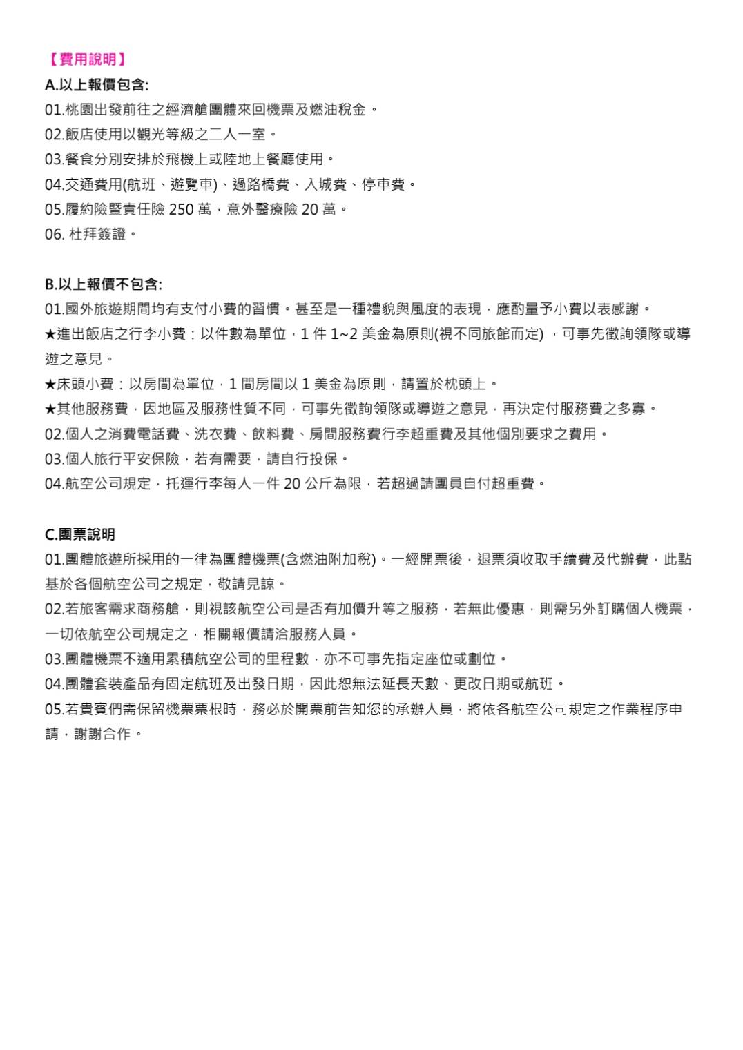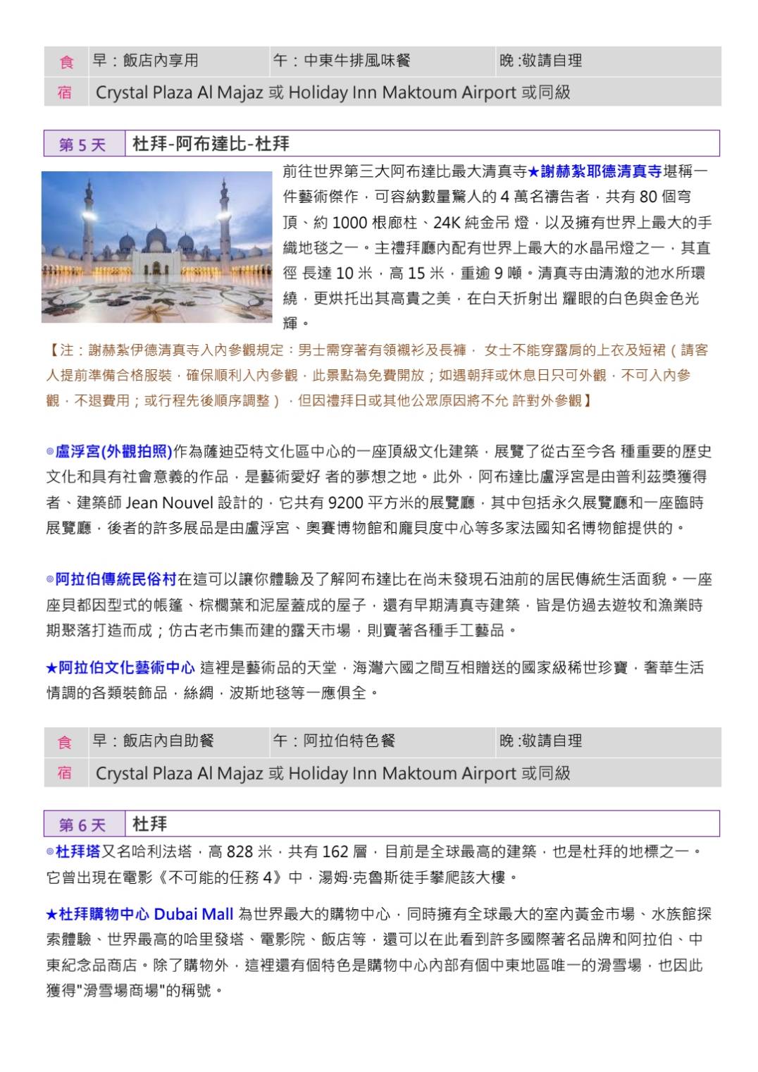 行程班機時間及降落城市與住宿飯店之確認以說明會為主。
