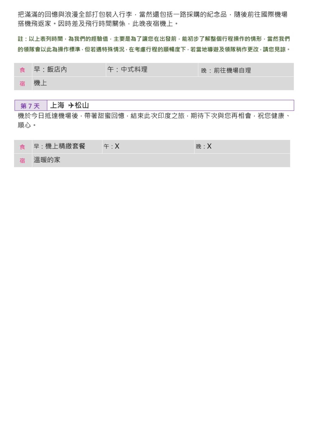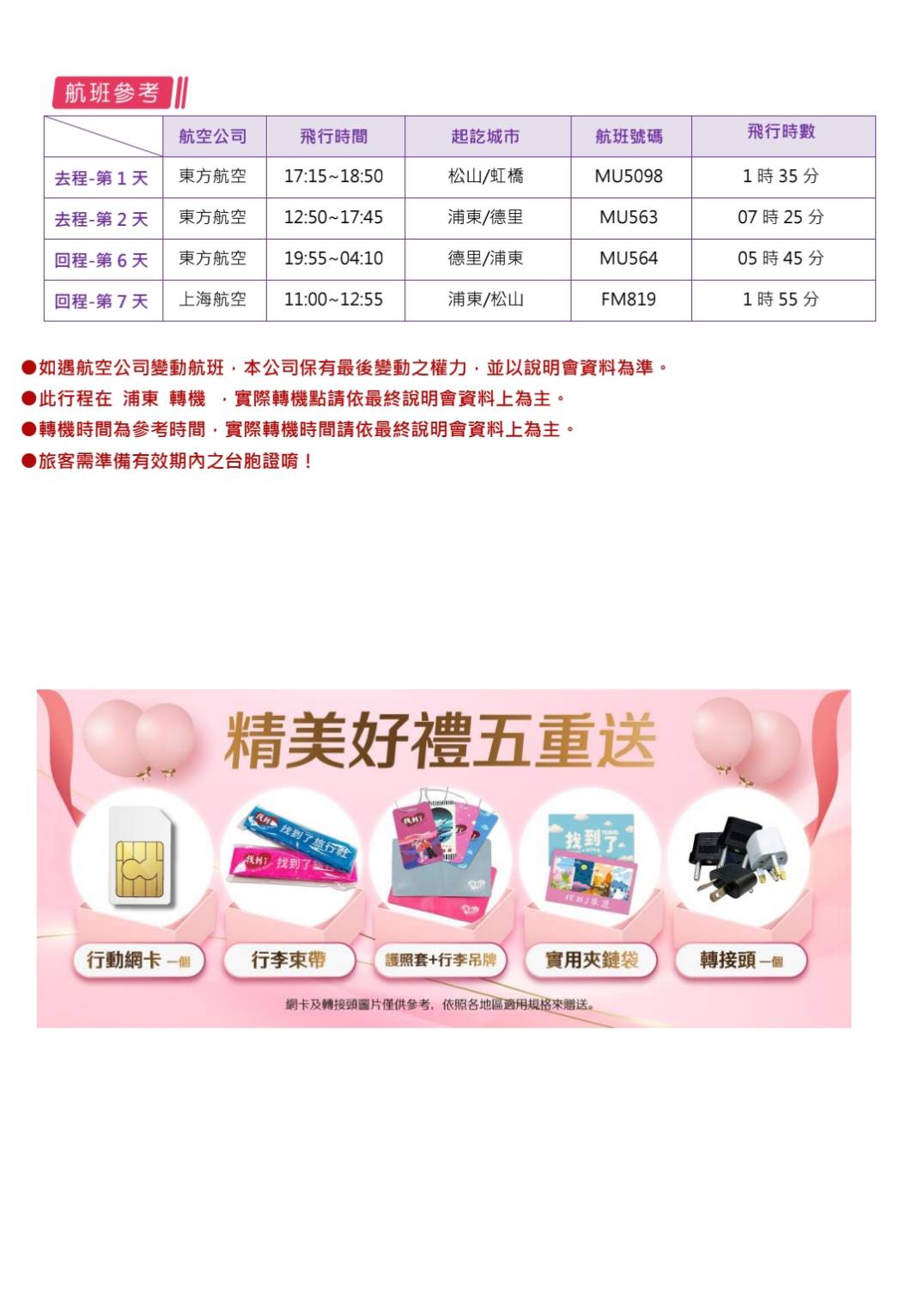 行程班機時間及降落城市與住宿飯店之確認以說明會為主。