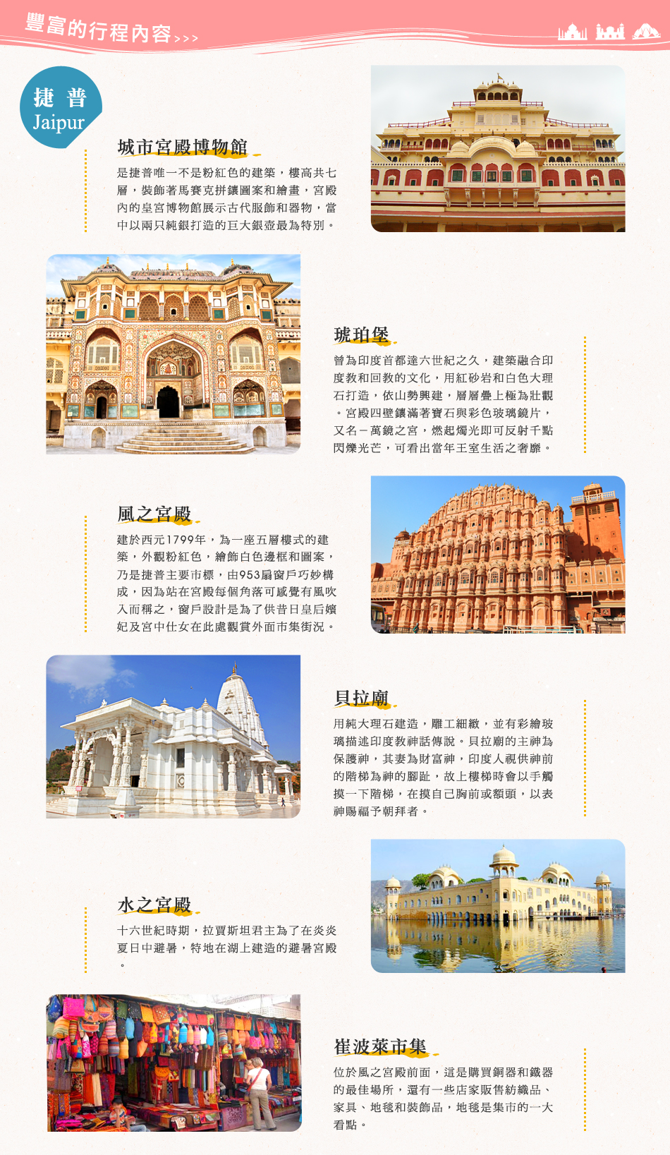 1.泰姬瑪哈陵為每週五關閉,行程若遇週五參觀或特殊假日休館,公司有權保留調整前後日行程參觀順序