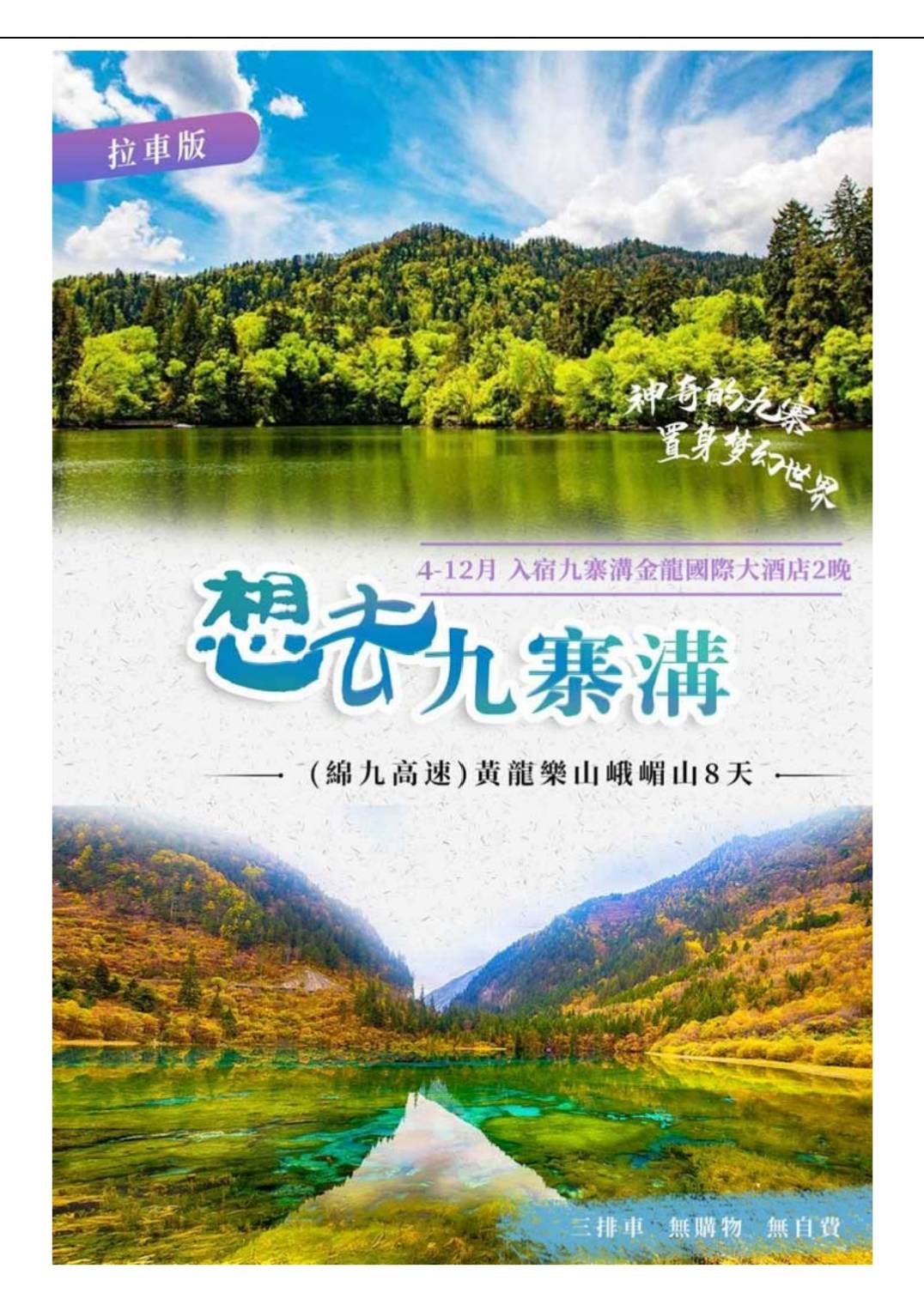 參訪九寨溝~黃龍 樂山大佛 峨嵋山8天 無購物無自費