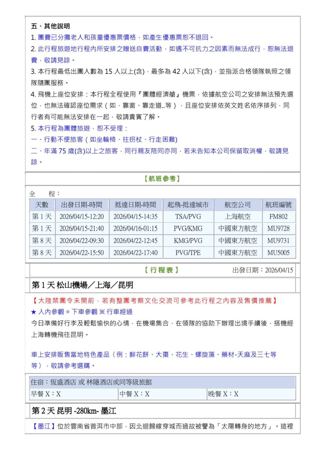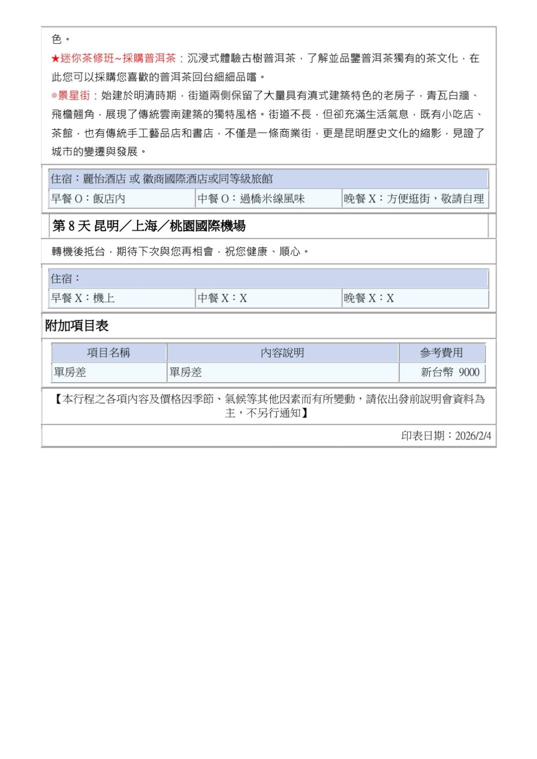 參訪團【西雙版納】景邁山.普洱 考察團8天(松山出桃園回)