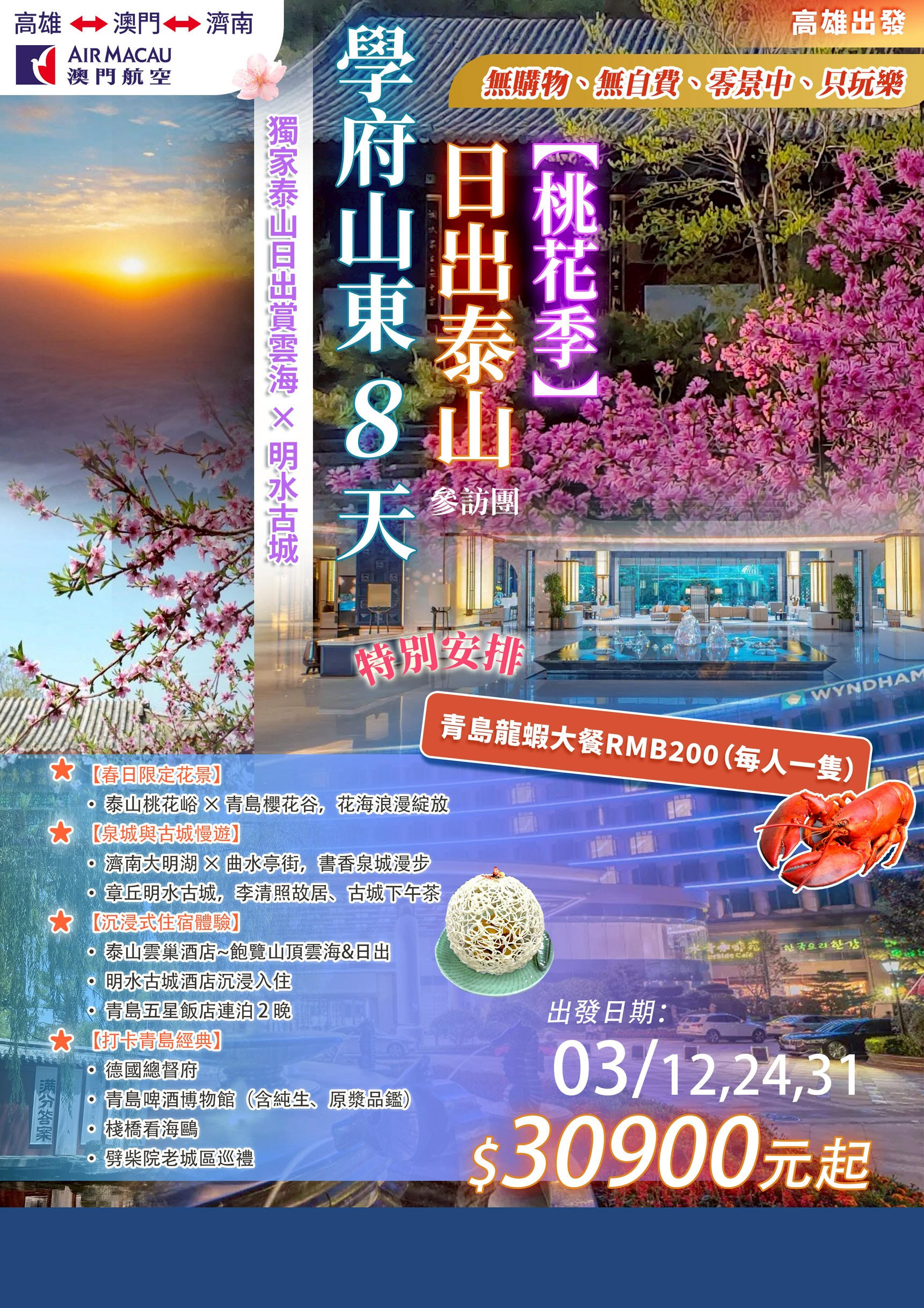 【日出泰山•桃花季】山東 8 日 🌸 跟著我們走,住進泰山雲海、漫步浪漫花海!