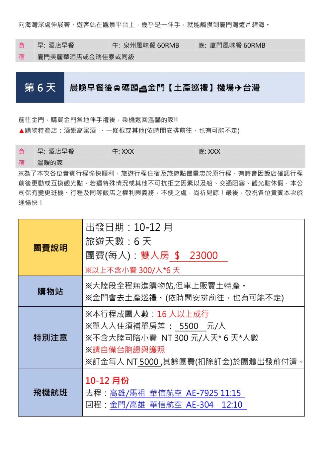 行程班機時間及降落城市與住宿飯店之確認以說明會為主。