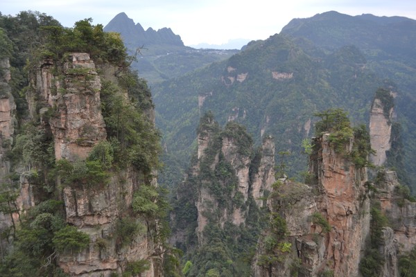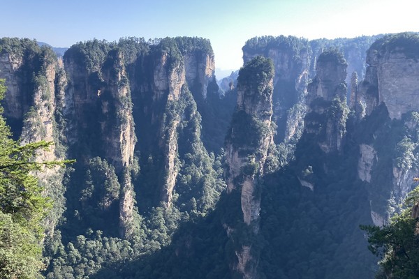 【天子山風景區 】 此處峰林如海、谷壑幽深、氣勢雄偉、視野開闊、層次分明,沿途經【 御筆峰 】,三座石峰直指雲天,高低参差有致,極像一排倒插的毛筆,傳說是向王天子兵敗後遺棄的御用之筆,故名御筆峰”。