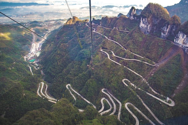 【天門山國家森林公園】一直被當地人民奉為神山、聖山,許多的神奇傳說千古流傳,更被人譽為湘西第一神山和武陵之魂 。天門山目前已修建開通世界最長的高山觀光索道天門山索道和被稱為天下第一公路奇觀通天大道,這兩項工程壯觀恢弘、驚險奇絕,令人無比震撼,使得天門山又添冠世奇景。乘天門山高山觀光索道上至山頂,觀淩霄台、鬼古棧道、天門洞等絕世奇觀。