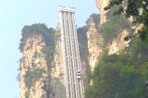 【百龍電梯上山 】有世界第一梯之稱,少見的戶外電梯,它以世界上最高的全暴露觀光電梯,世界上最快的雙層觀光電梯,世界上 載重量最大、速度最快的觀光電梯,三項桂冠獨步世界。