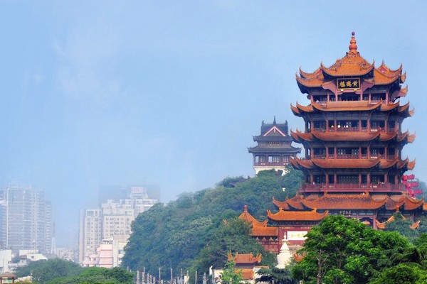 【黃鶴樓(遠觀)】與湖南岳陽樓、江西滕王閣合稱江南三大名樓,是中國國家旅遊勝地四十佳之一。黃鶴樓被稱為「天下絕景」,這一稱謂源自宋徽宗的一幅畫「天下絕景黃鶴樓」。黃鶴樓共5層,高 51.4 米。始建於三國時代吳黃武二年(公元 223 年),距今已有1800年歷史,歷代屢修屢毀,黃鶴樓原址靠近江邊,被選用為武漢長江公鐵兩用大橋的引橋起點,現在的黃鶴樓是於 1985 年異址重建的。