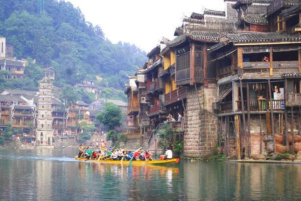 【鳳凰古城】是湘西土家族苗族自治州的鳳凰縣的縣城,它緊鄰沱江而建,吊腳木樓布滿山坡。這裏是中國第一 流的現代文學家沈從文的故鄉,他曾在《 邊城》中描繪過它素樸而迷人的風情。