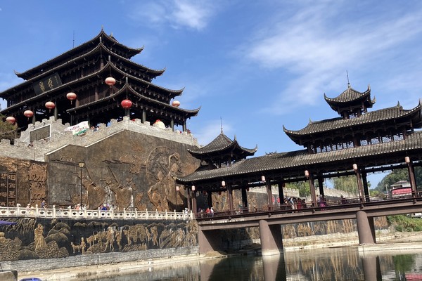 【虹橋風雨樓】虹橋風雨樓橫臥沱江之上,與民族一條街橫豎交錯,形成古城的市井畫面和重疊的風景。