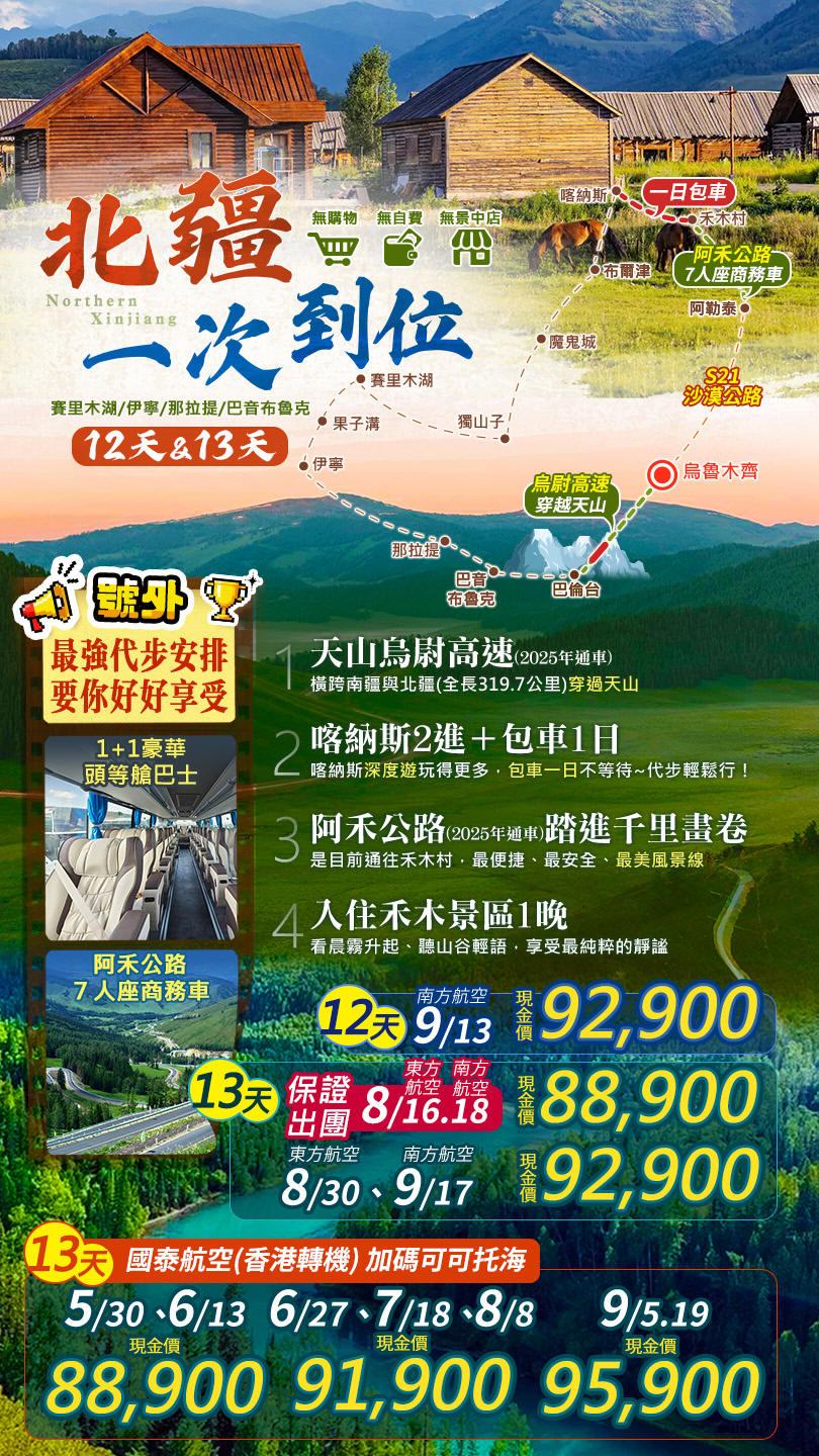 行程如遇觀光景點休假及住宿飯店地點調整或遇不可抗拒之現象(天候不佳),本公司保有變更行程之權利。