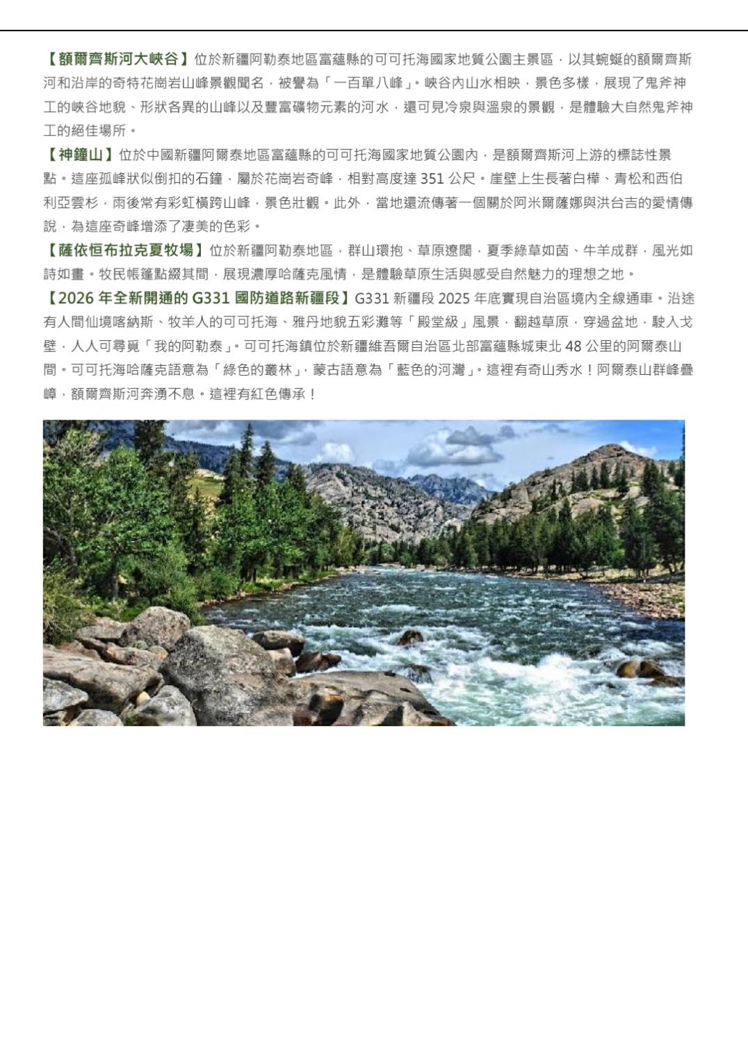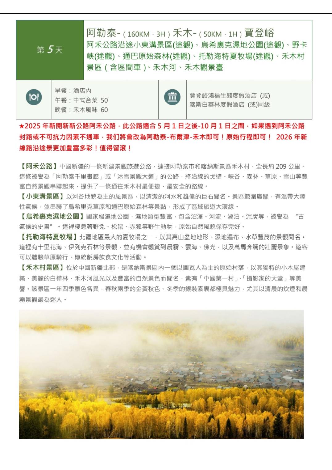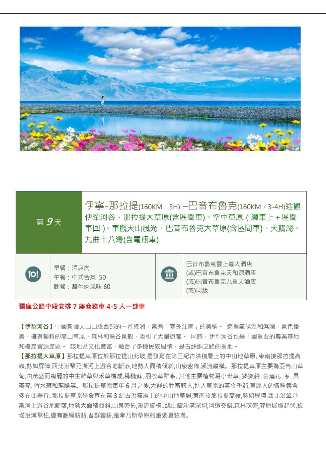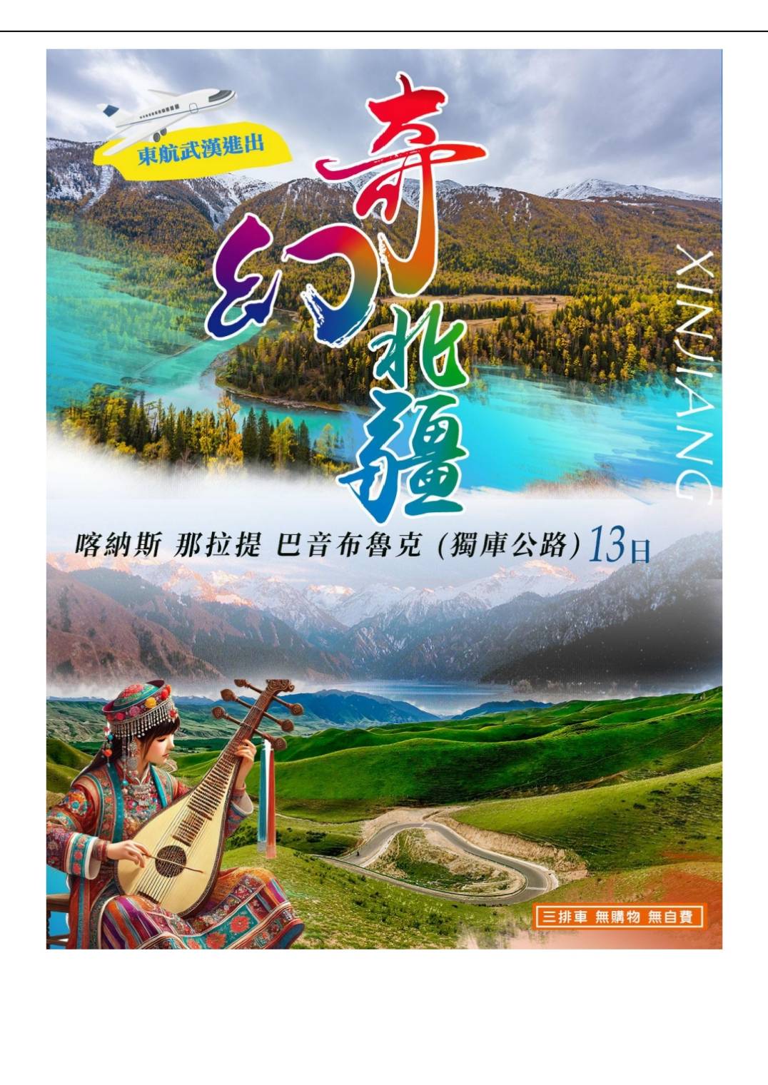 高出武漢✈參訪北疆~喀納斯(獨庫公路) 那拉提 巴音布魯克13天-