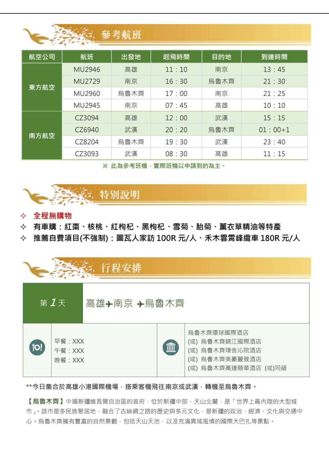 行程班機時間及降落城市與住宿飯店之確認以說明會為主。