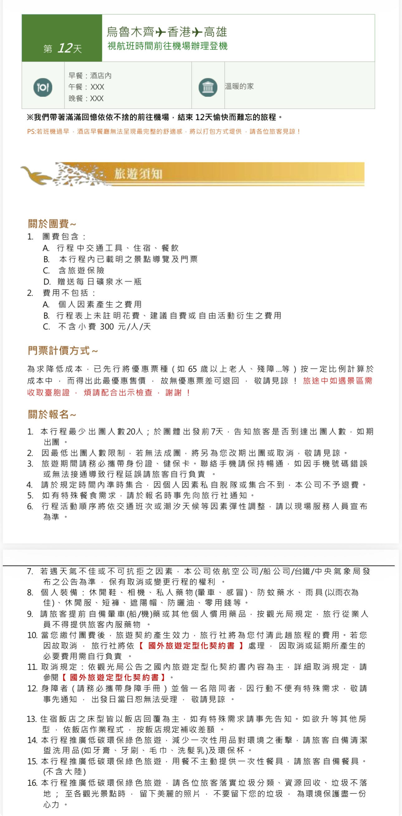 行程如遇觀光景點休假及住宿飯店地點調整或遇不可抗拒之現象(天候不佳),本公司保有變更行程之權利。