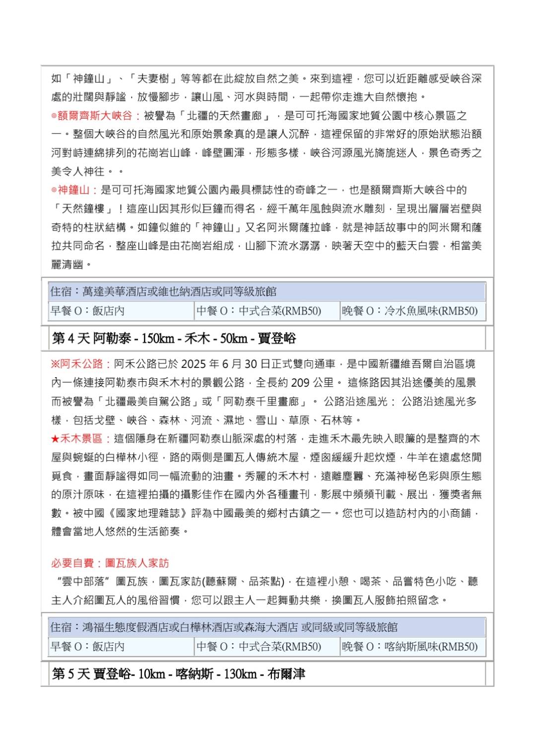 高出✈北疆獨庫公路、喀可可托海、喀納斯、那拉提大草原13天 -其他團型
