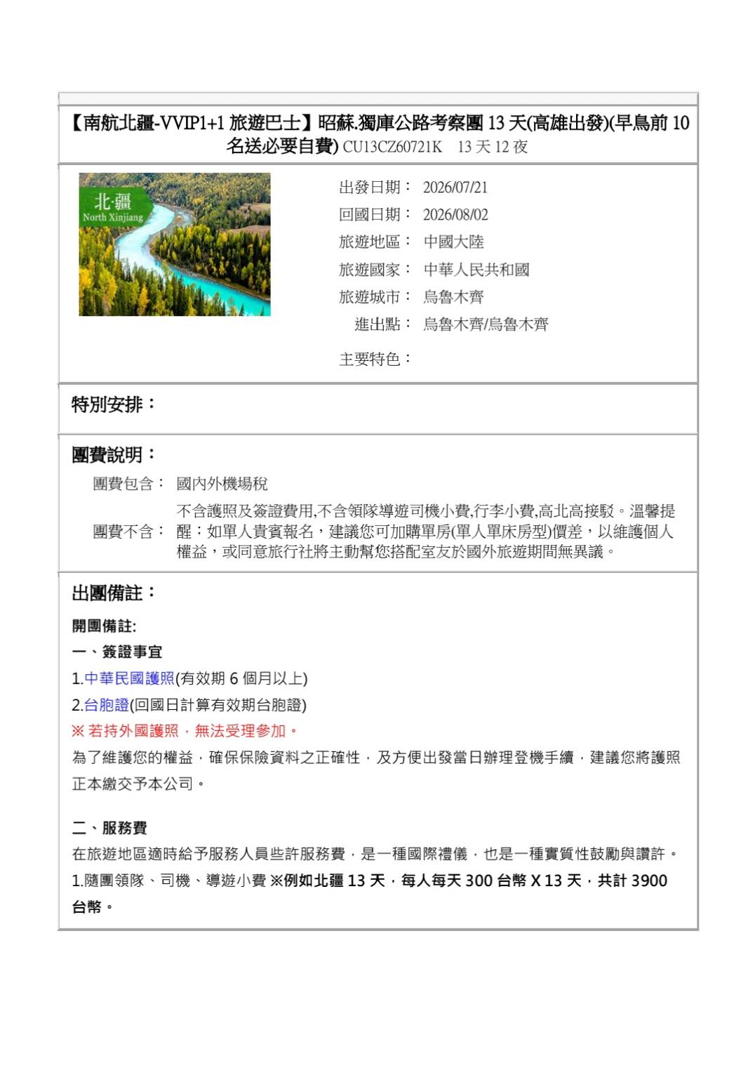 高出參訪【南航北疆VVIP1+1旅遊巴士】昭蘇.獨庫公路13天