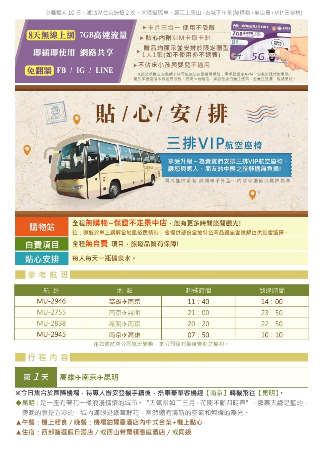 參訪MU南京雲南10日瀘沽湖 玉龍雪山 住英迪格2晚 送網卡