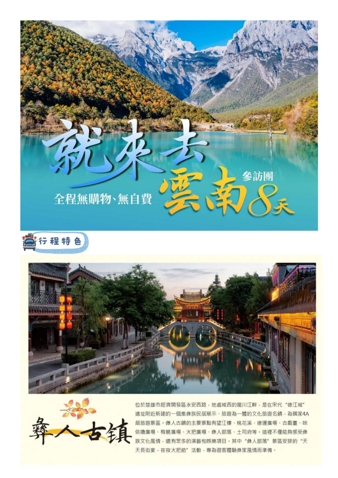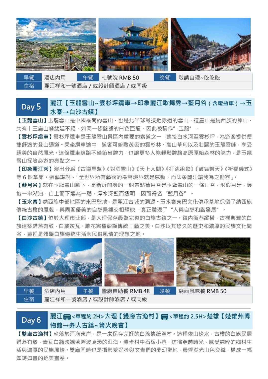 雲南8天雙古城、玉龍雪山、印象麗江秀、洱海風情 無購物無自費