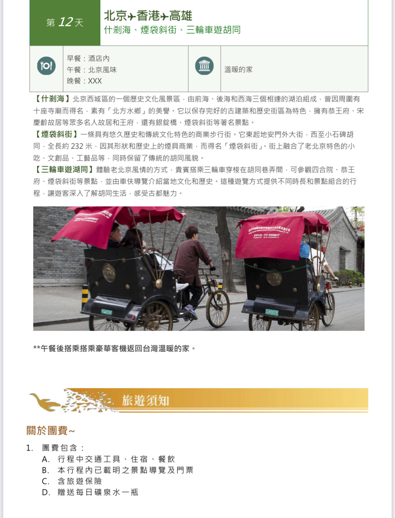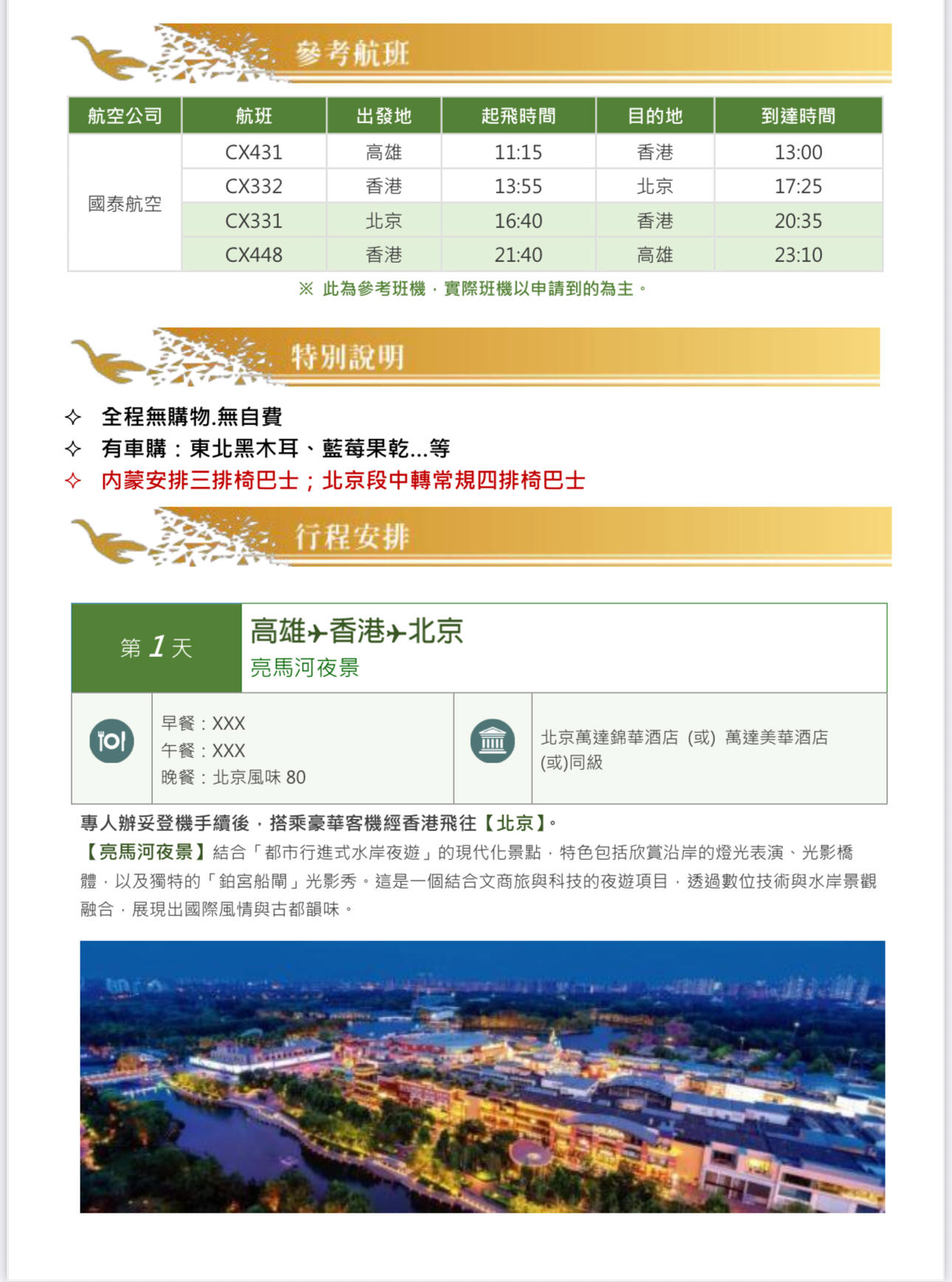 行程班機時間及降落城市與住宿飯店之確認以說明會為主。