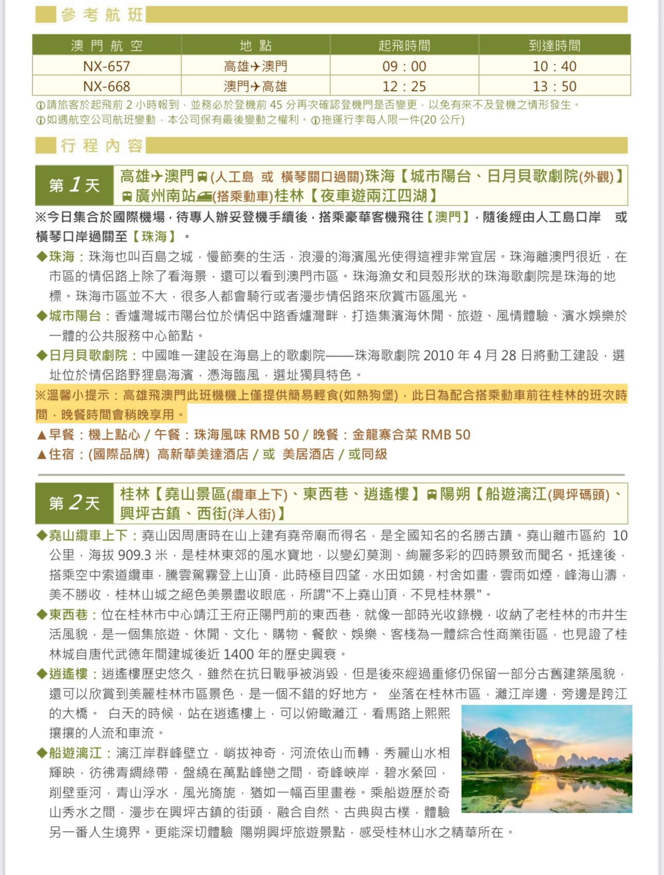 行程班機時間及降落城市與住宿飯店之確認以說明會為主。