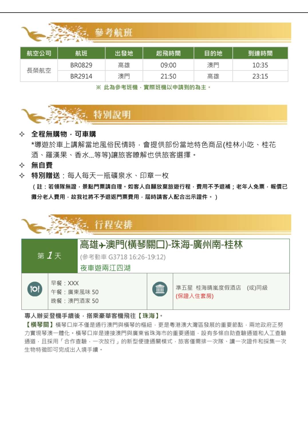 行程班機時間及降落城市與住宿飯店之確認以說明會為主。