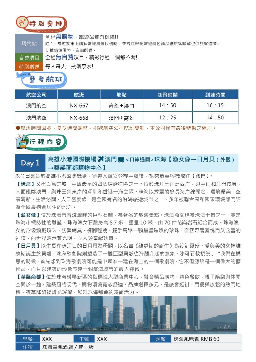 行程班機時間及降落城市與住宿飯店之確認以說明會為主。