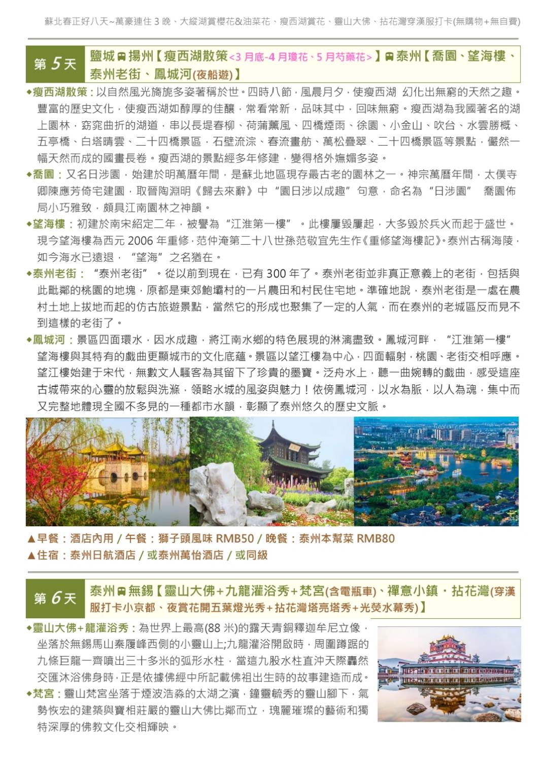 參訪9C上海蘇北春正好八天萬豪3晚.大縱湖賞櫻花_油菜花.瘦西湖