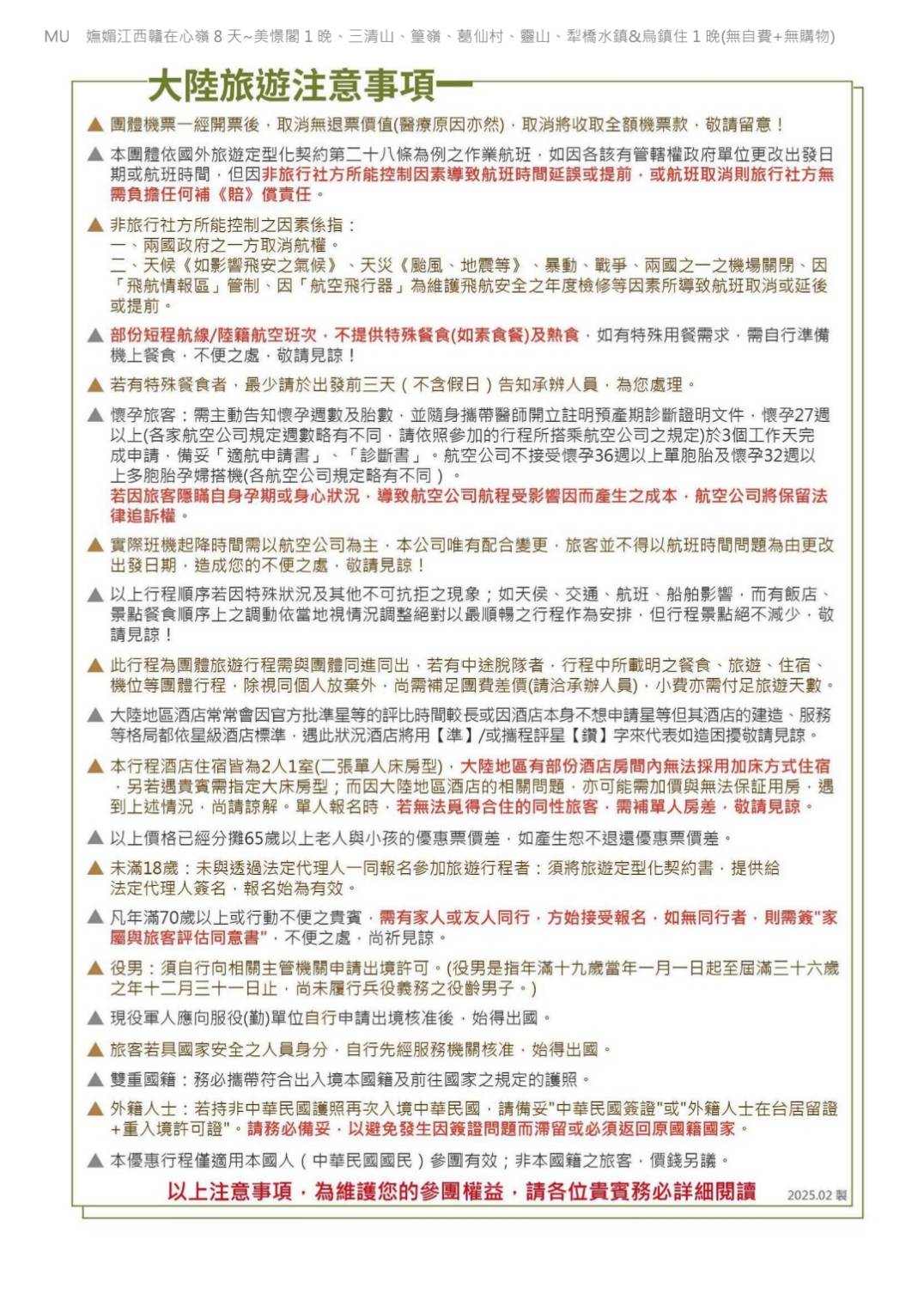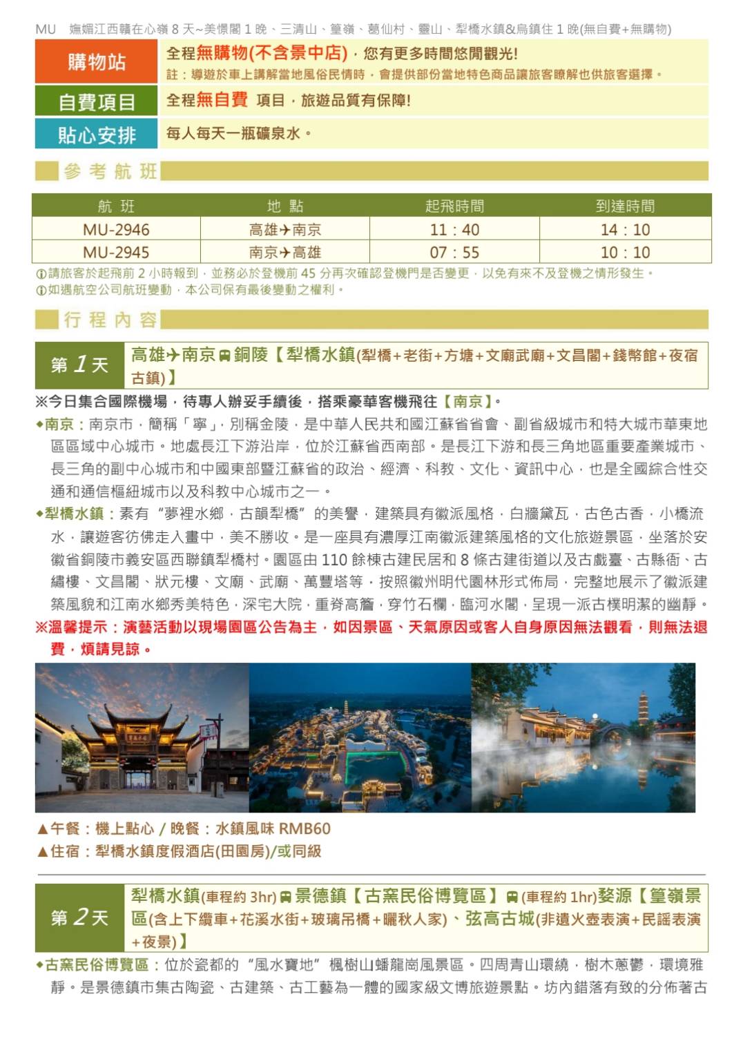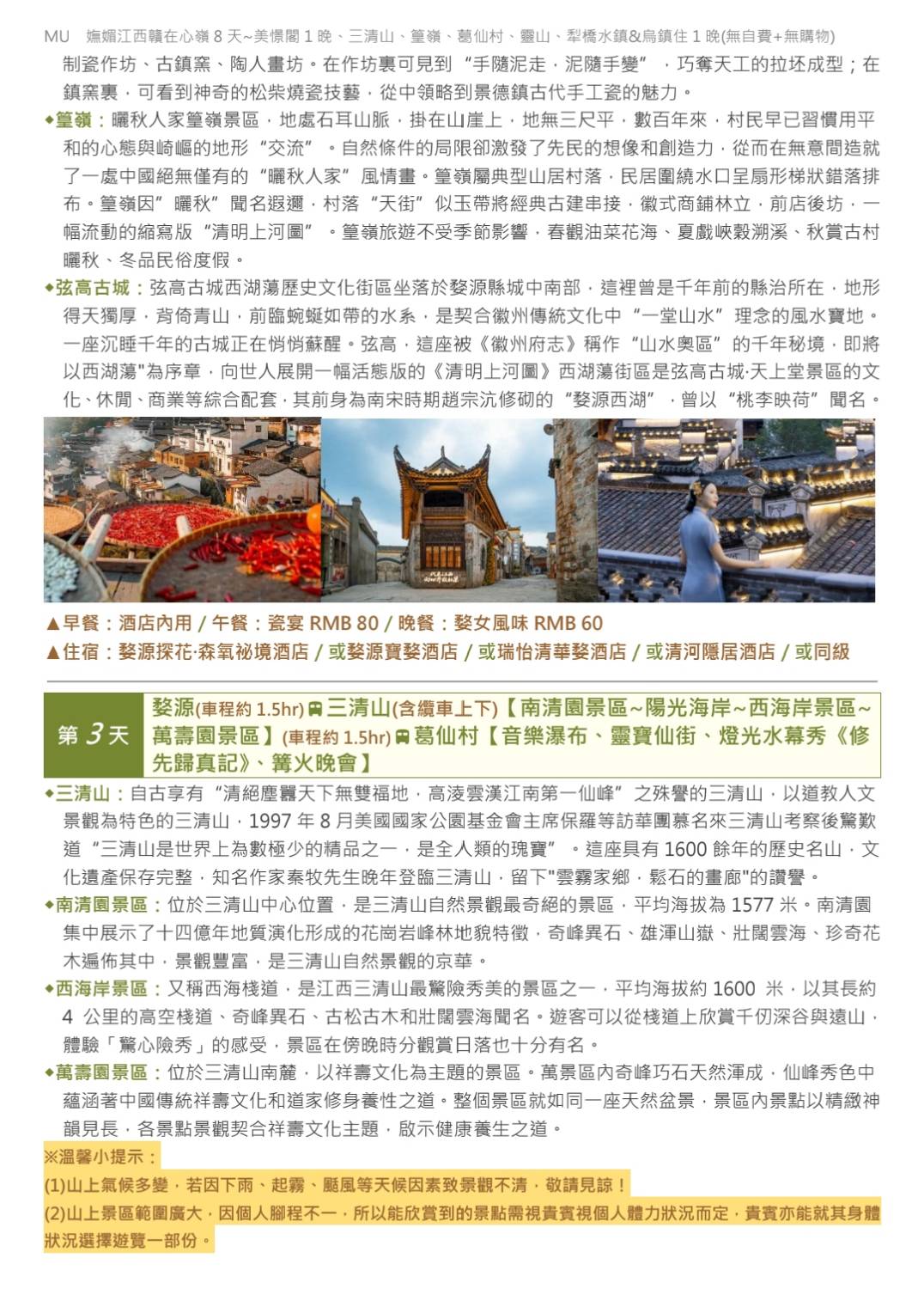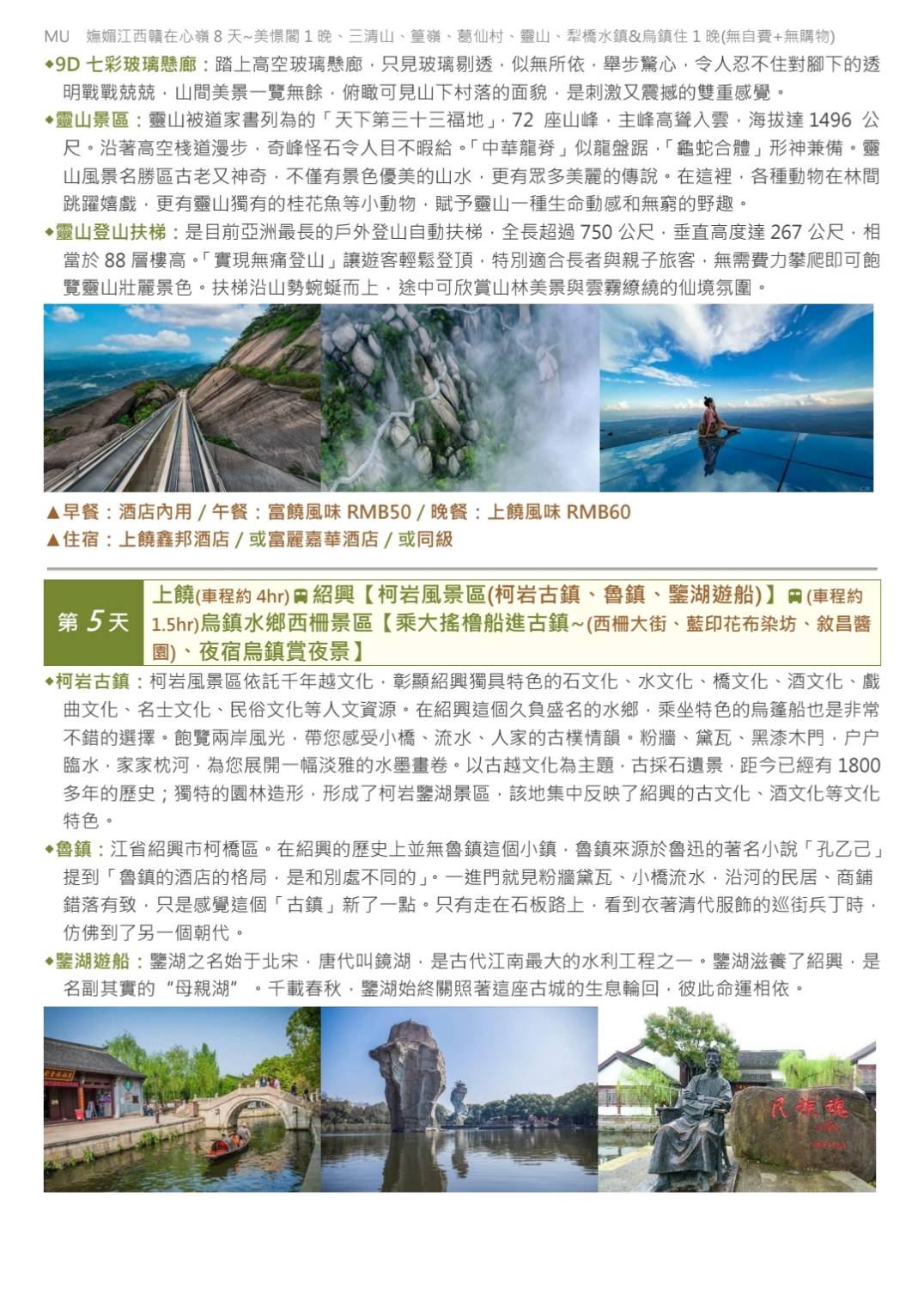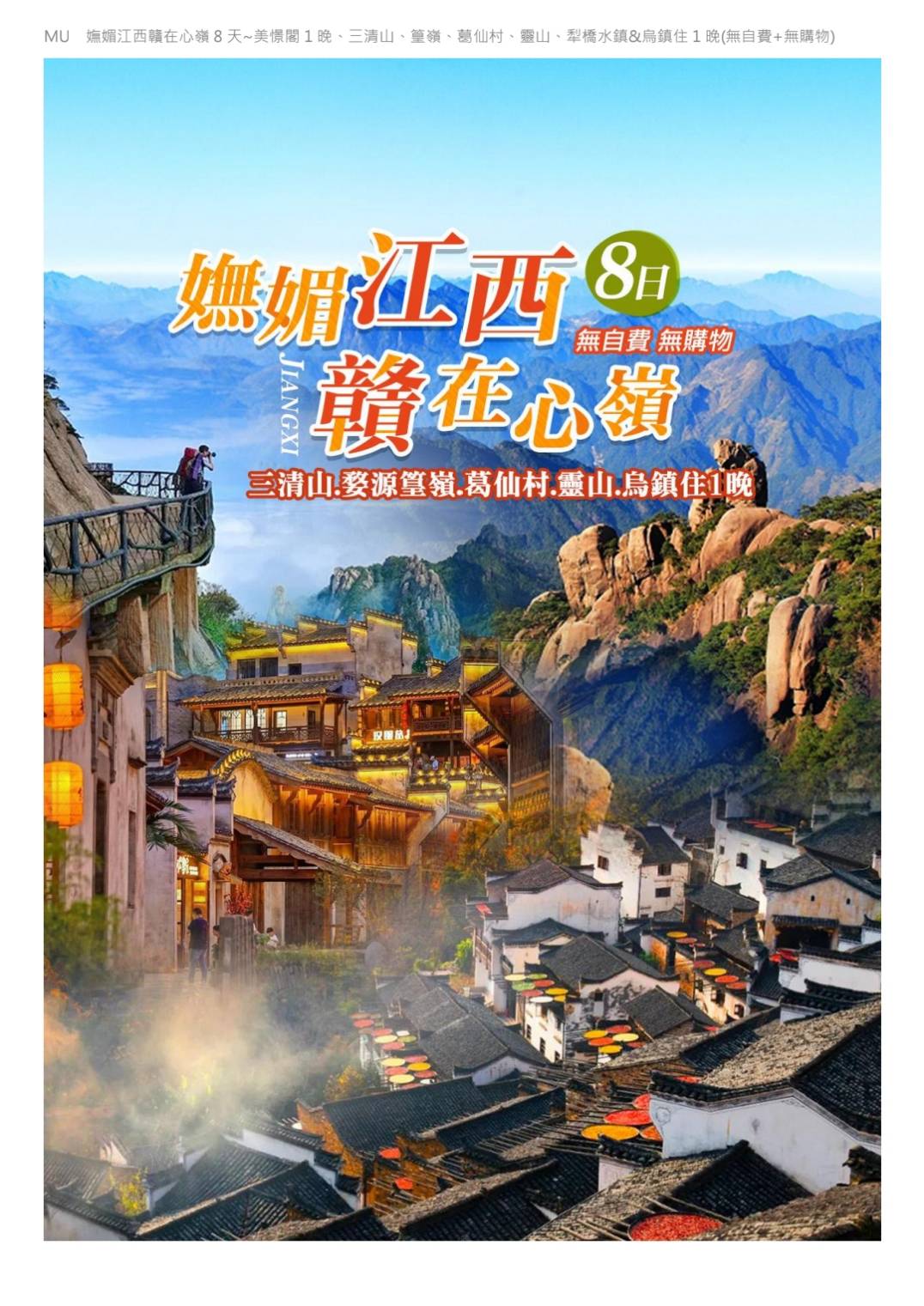 參訪MU南京江西.贛在心嶺8天美憬閣1晚、三清山、篁嶺、葛仙村 (更多出發日)