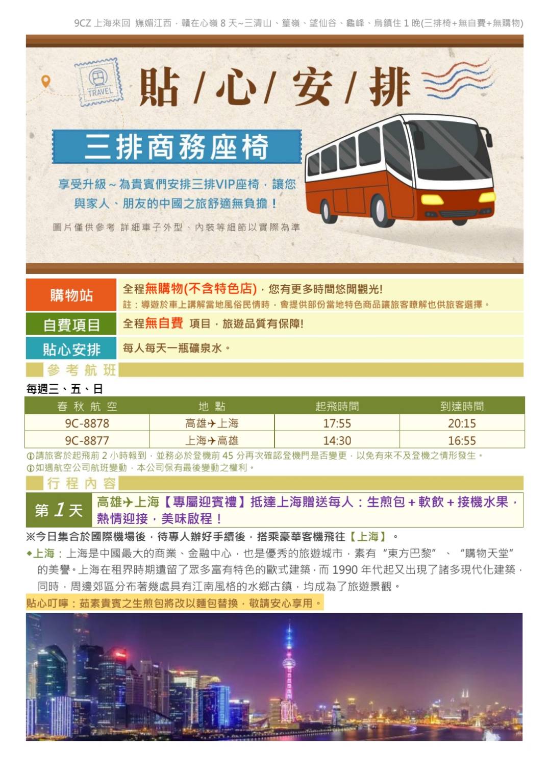 參訪9C上海江西8天~三清山、篁嶺、望仙谷、龜峰、烏鎮住1晚
