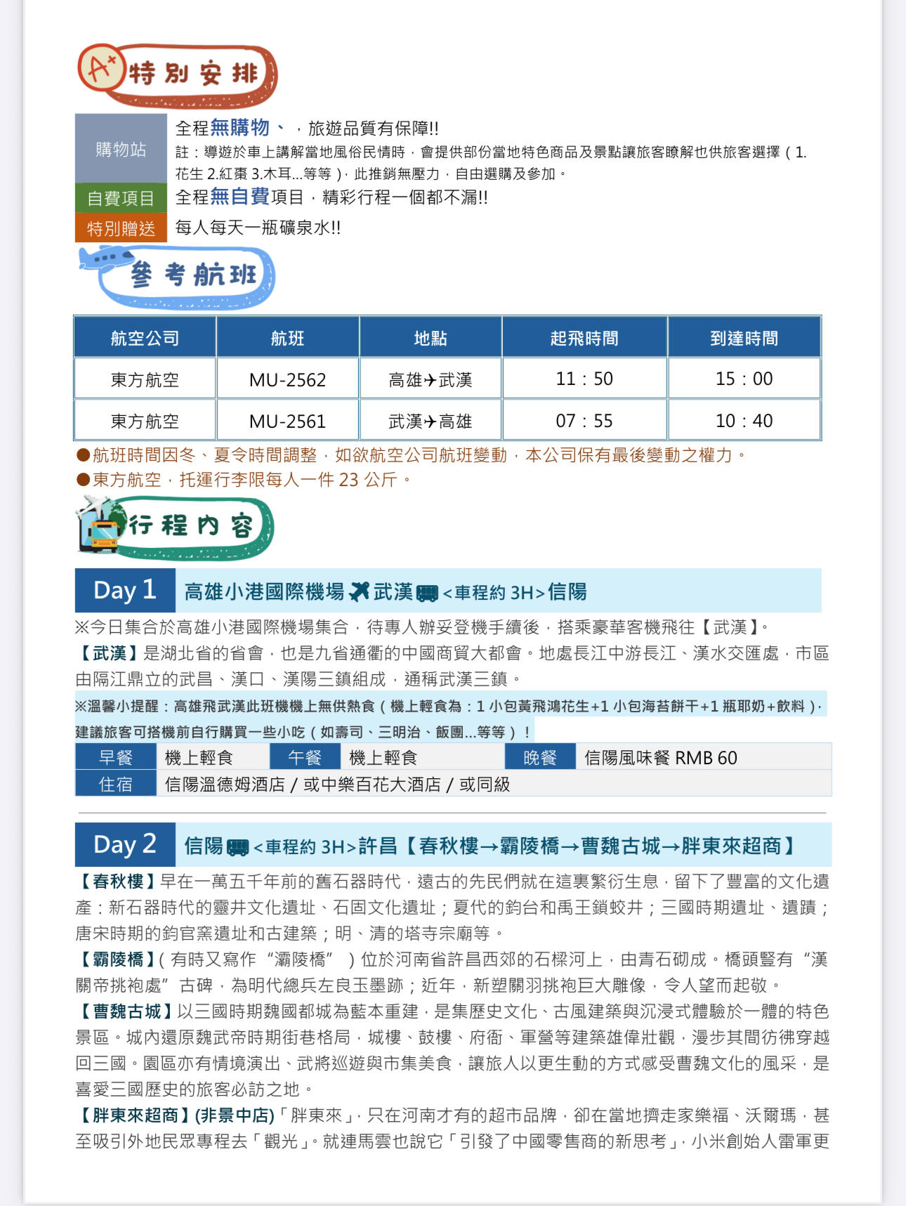 行程班機時間及降落城市與住宿飯店之確認以說明會為主。