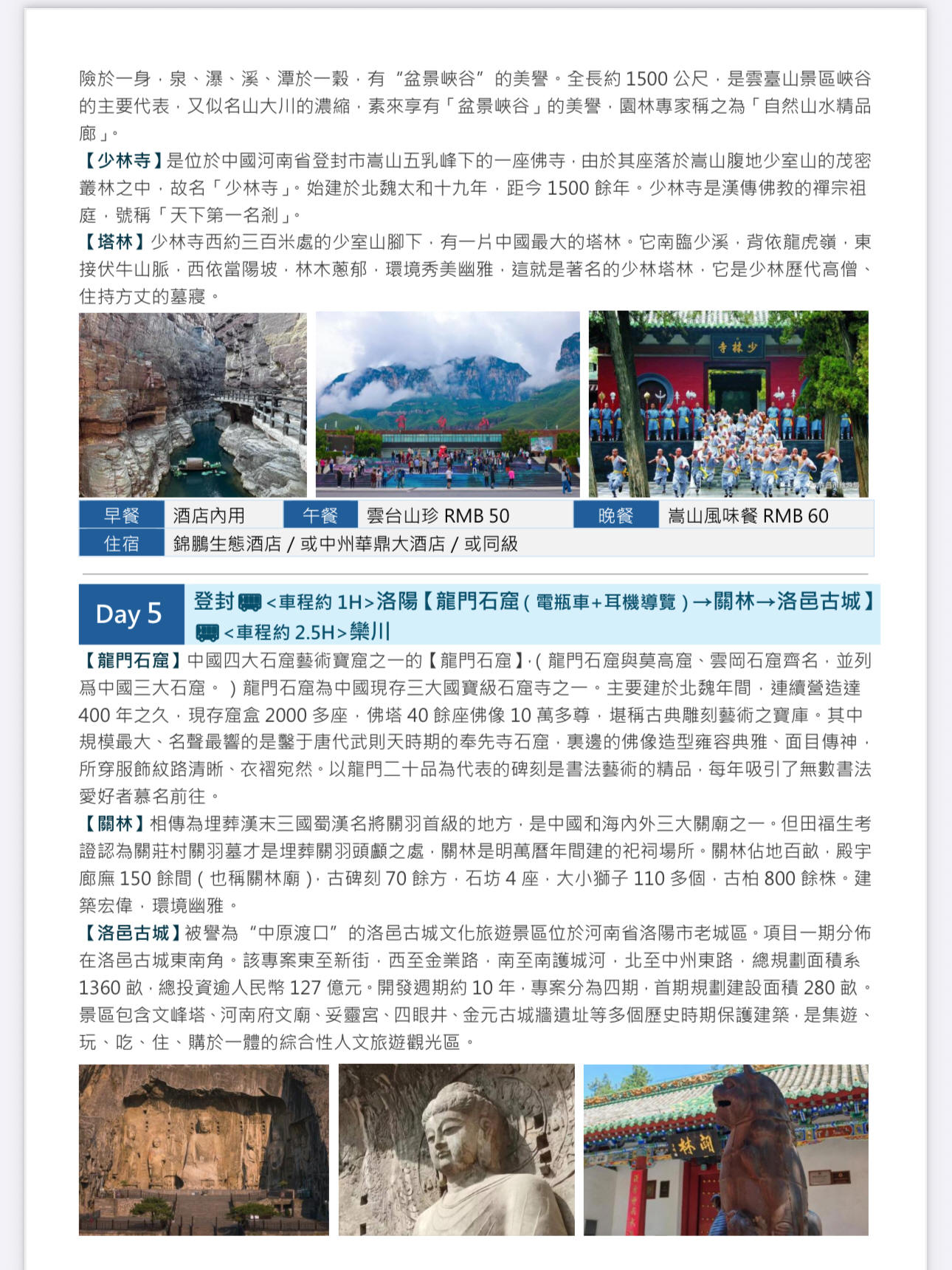 河南8天老君山.雲台山.清明上河園.少林寺.龍門石窟 無購物無自費