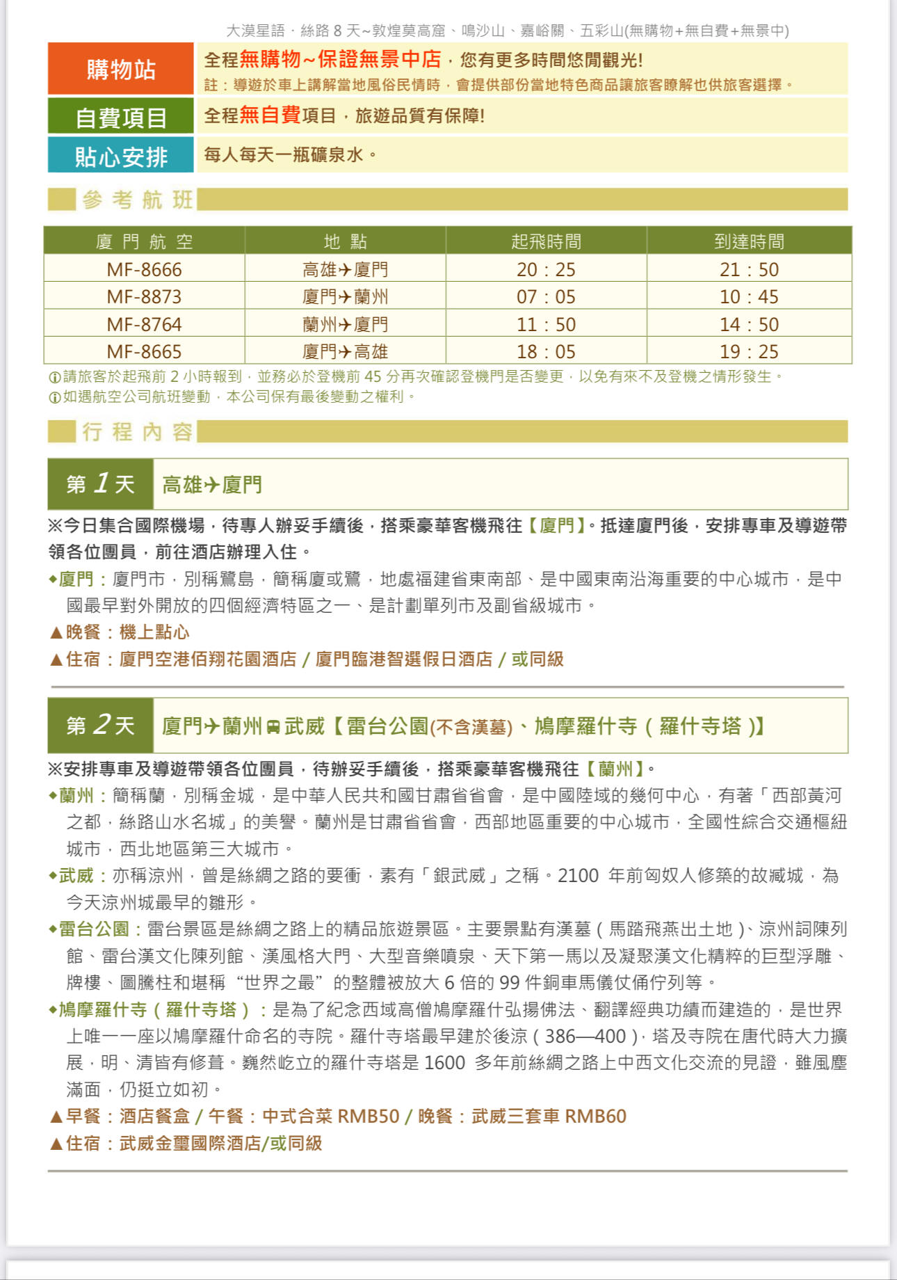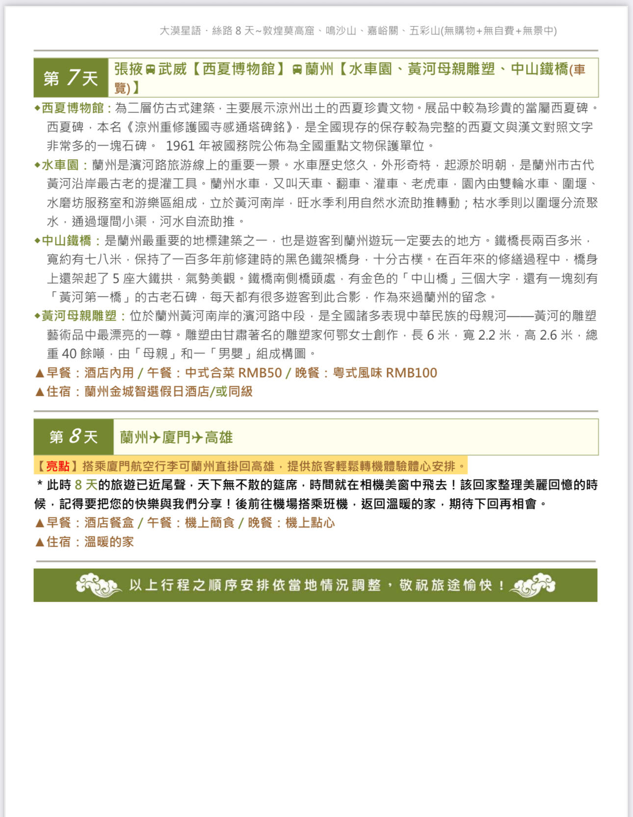 3. 行程如遇觀光景點休假及住宿飯店地點調整或遇不可抗拒之現象(天候不佳),本公司保有變更行程之權利。