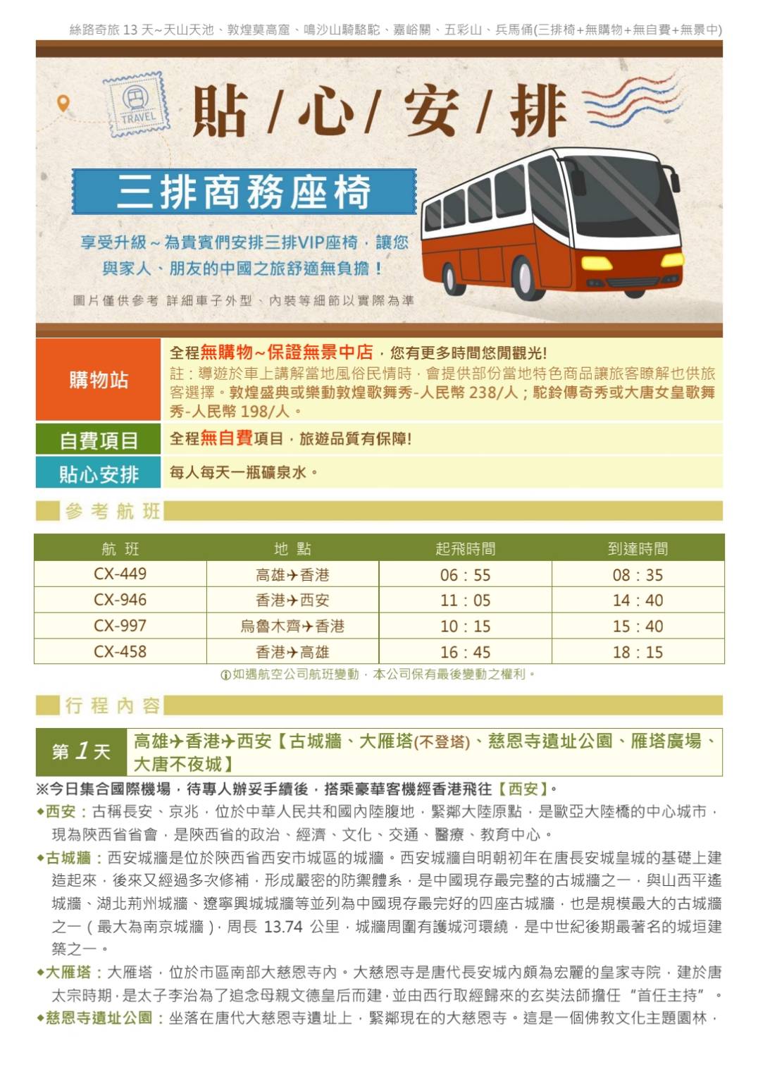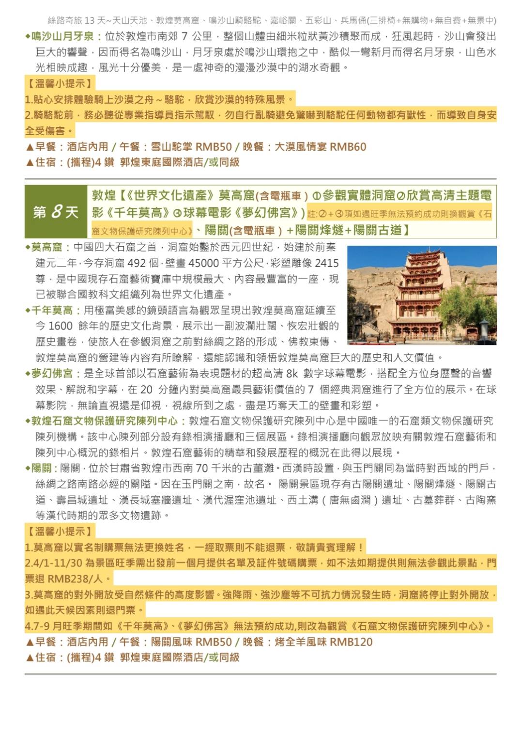 參訪CX西安絲路奇旅13天天山天池、敦煌莫高窟、鳴沙山騎駱駝