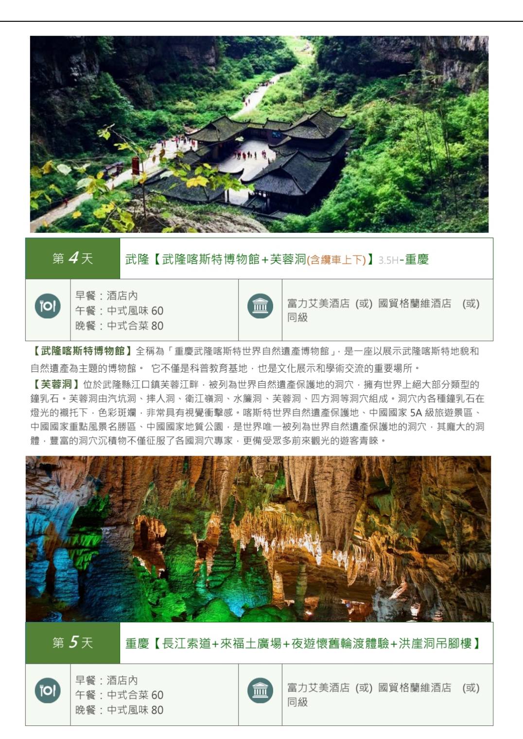 參訪CX重慶武隆天坑美食五星六天 無購物 無自費 無景中站